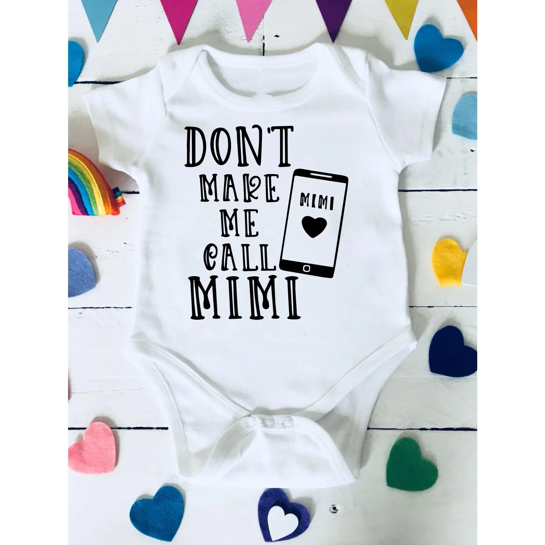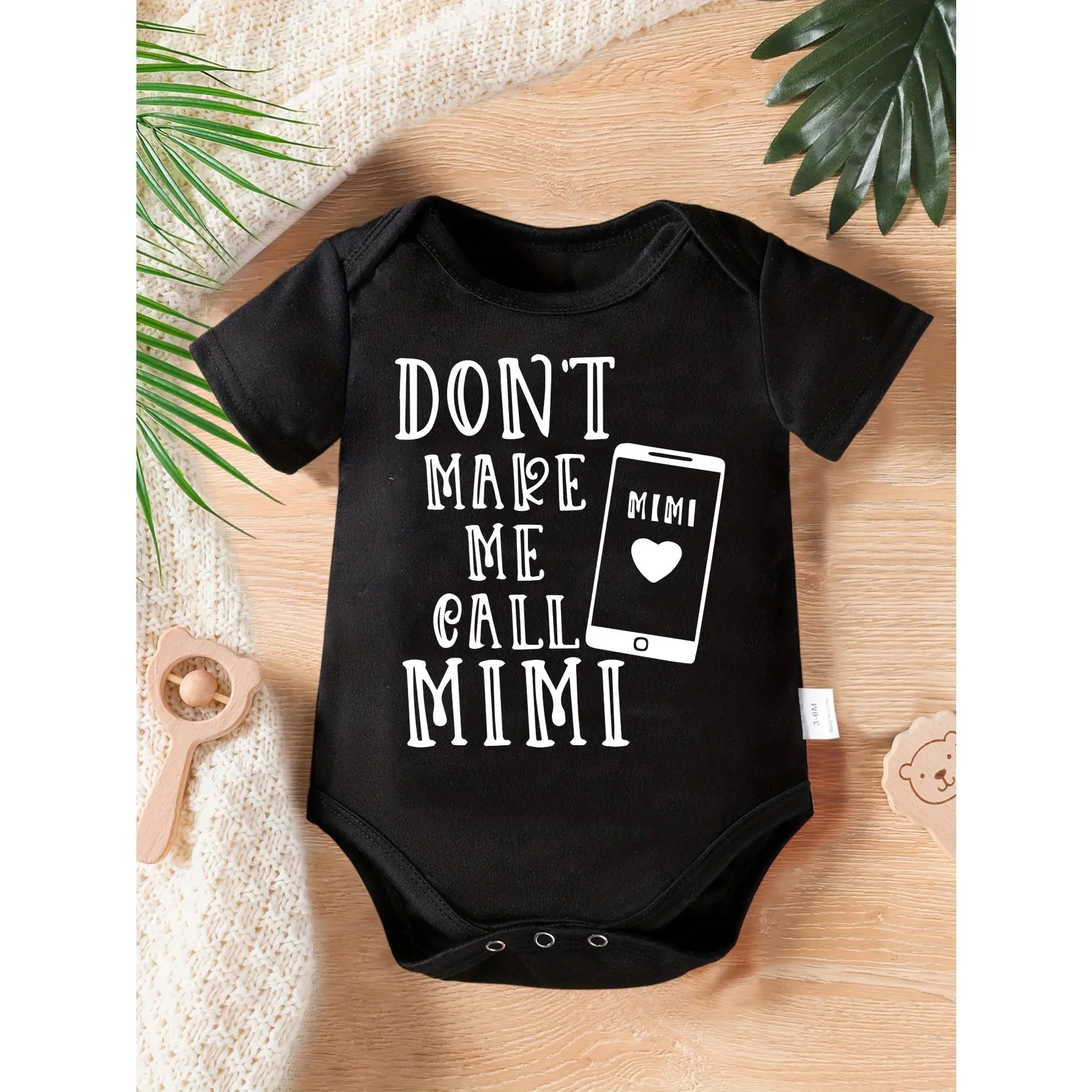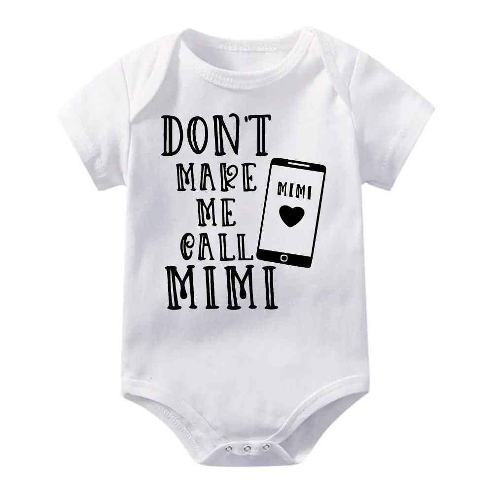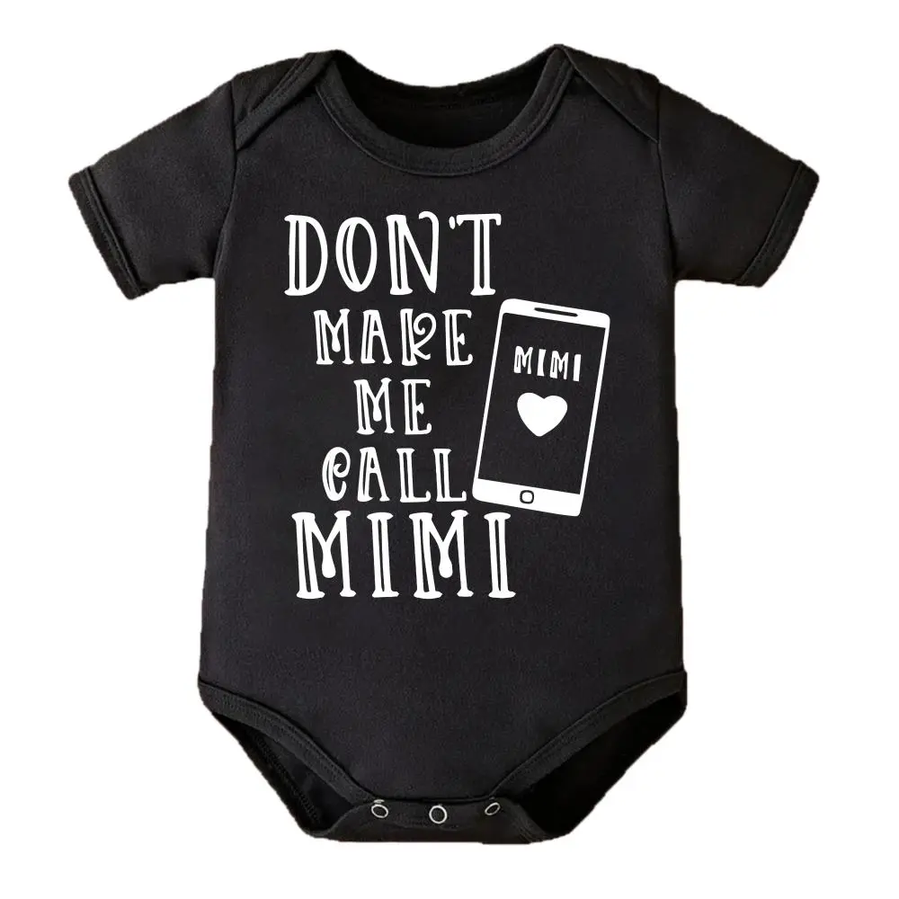 Cute Baby Bodysuit With Dont Make Me Call Mimi Phone Design Print Soft Versatile Round Neck Button Detail Regular Fit All Seasons Knitted Fabric Onesie