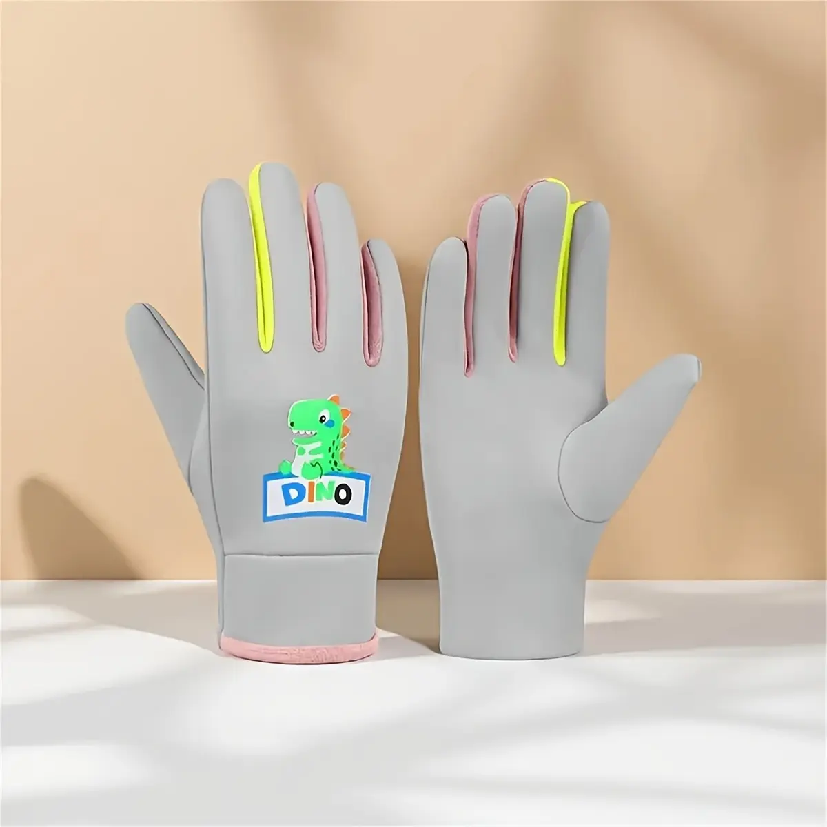 1 Pair Kids Winter Gloves - Thermal Insulated Cold Weather Gloves with Non-Slip Grip, Thickened Fleece-Lined Gloves for Boys & Girls Ages 3-9, Skiing, Cycling, Outdoor Activities - Easy-Clean (Hand Wash/Dry Clean) - Ideal Christmas/Back-to-School Gift, Wi