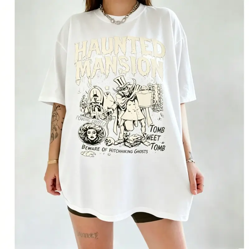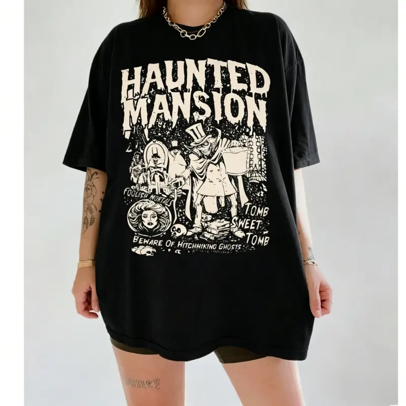 5. Retro The Haunted Mansion Shirt, Spooky Season Shirt, Madam Leota Hitchhiking Ghosts, Halloween Gothic Family Shirt
