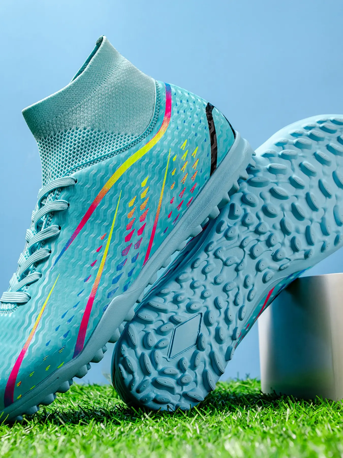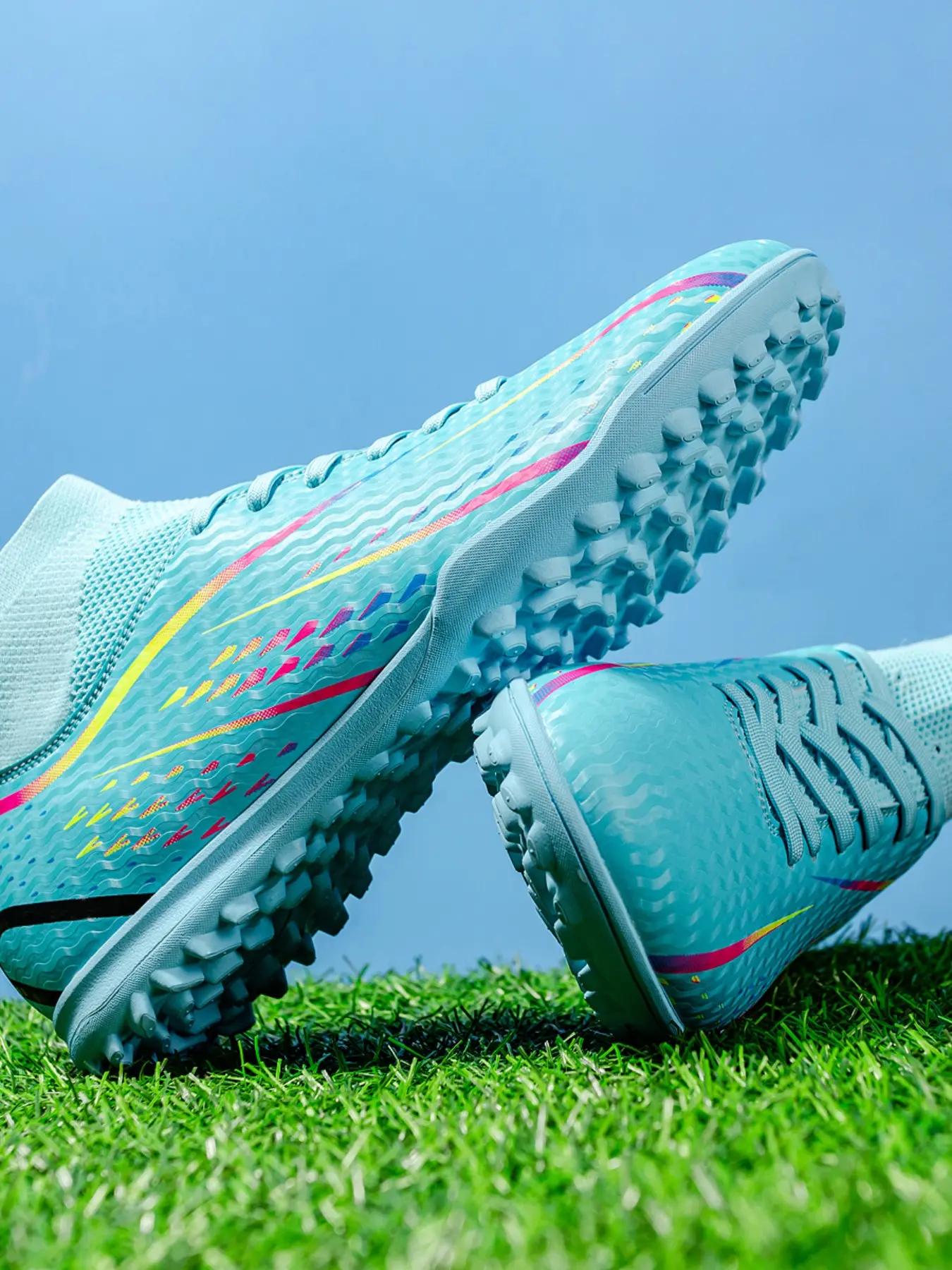 Men's Football Shoes TF Studs, Outdoor Sports Cleats, Durable Anti-Slip, Superior Grip, Ankle Protection, Rubber Sole, All-Season Use
