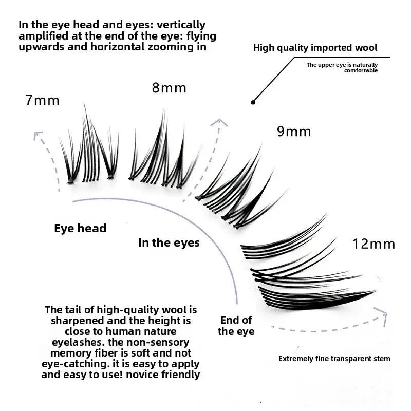 No Glue Under Eyelashes Cluster -Lower Lashes, Natural Volume,Segment Lashes, Easy Apply for Beginners, Anime Eye Lashes,Easy To Remove,4-8mm