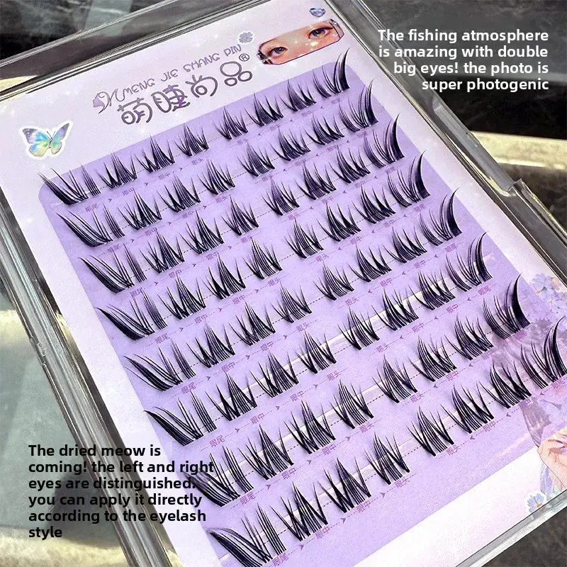Ninetynine Dreams [NO GLUE] Mermaid Self-Adhesive Press-On Lashes | Self-Adhesive Ultra-Thin Band, 9-13mm, C++ Curl Spiky Anime Manhua Style, Natural DIY Clusters — Beginner Friendly Trendy Must-Have Makeup Costmetics False Eyelashes