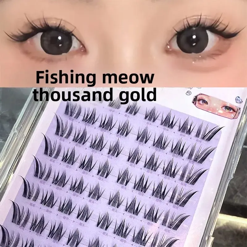 Ninetynine Dreams 80PCs Foxy Lashes | Siren Cat Eye 8–13mm C+ Curl DIY Lash Clusters — Waterproof Long-Lasting Reusable Wispy Ultra-Thin Band, Beginner-Friendly False Eyelashes