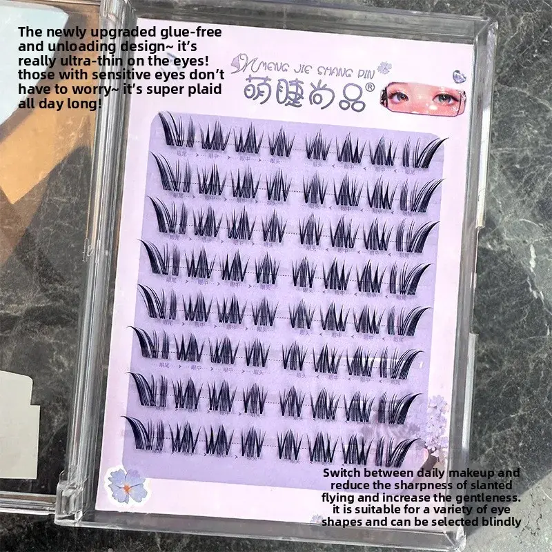 Large Capacity Self-Adhesive Glueless False Eyelashes Fluffy Winged Fox Eye Natural Volume Lashes Reusable Easy Removal 11-13mm