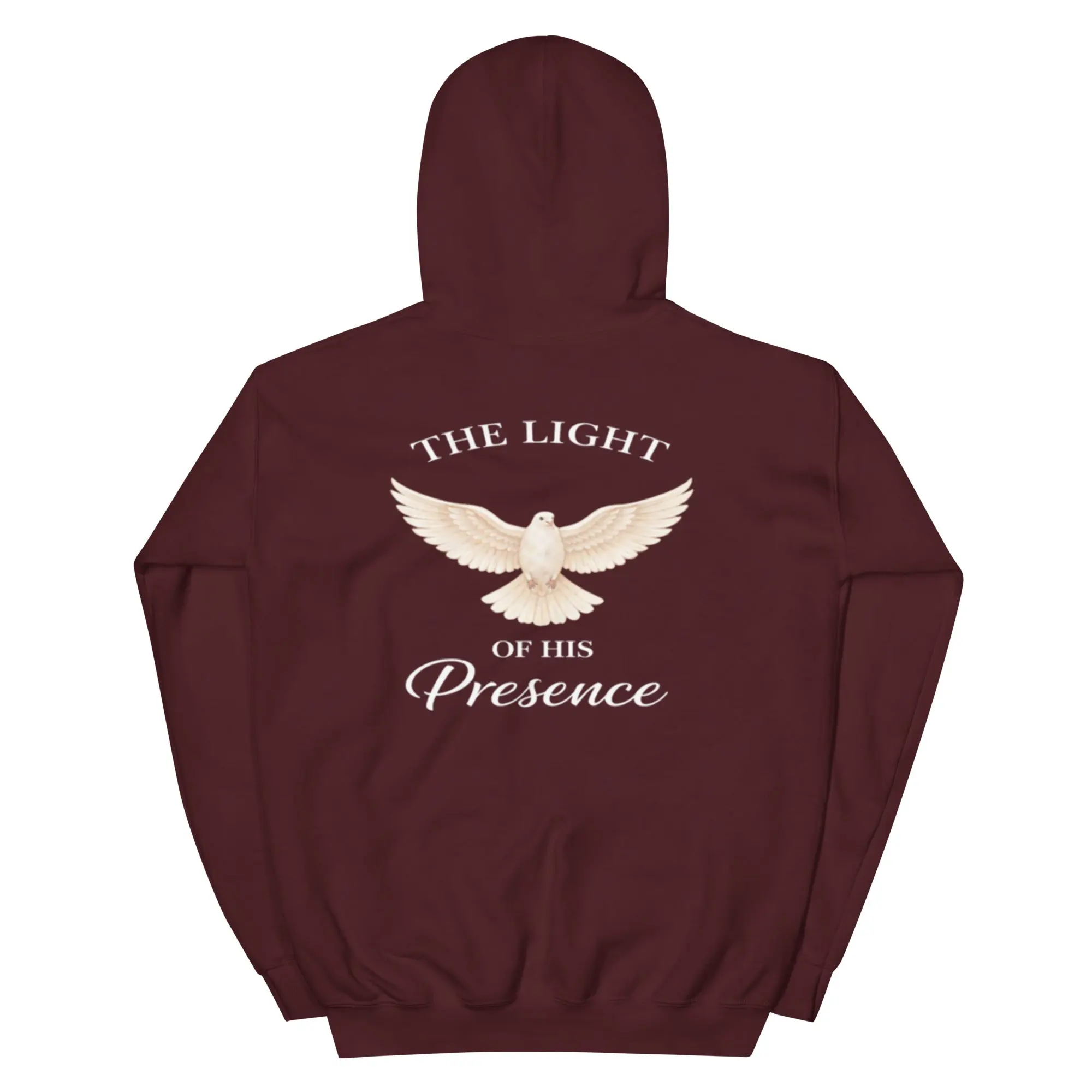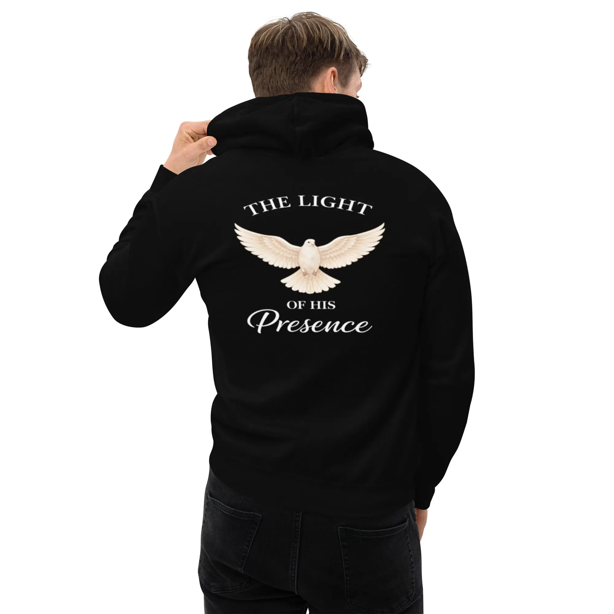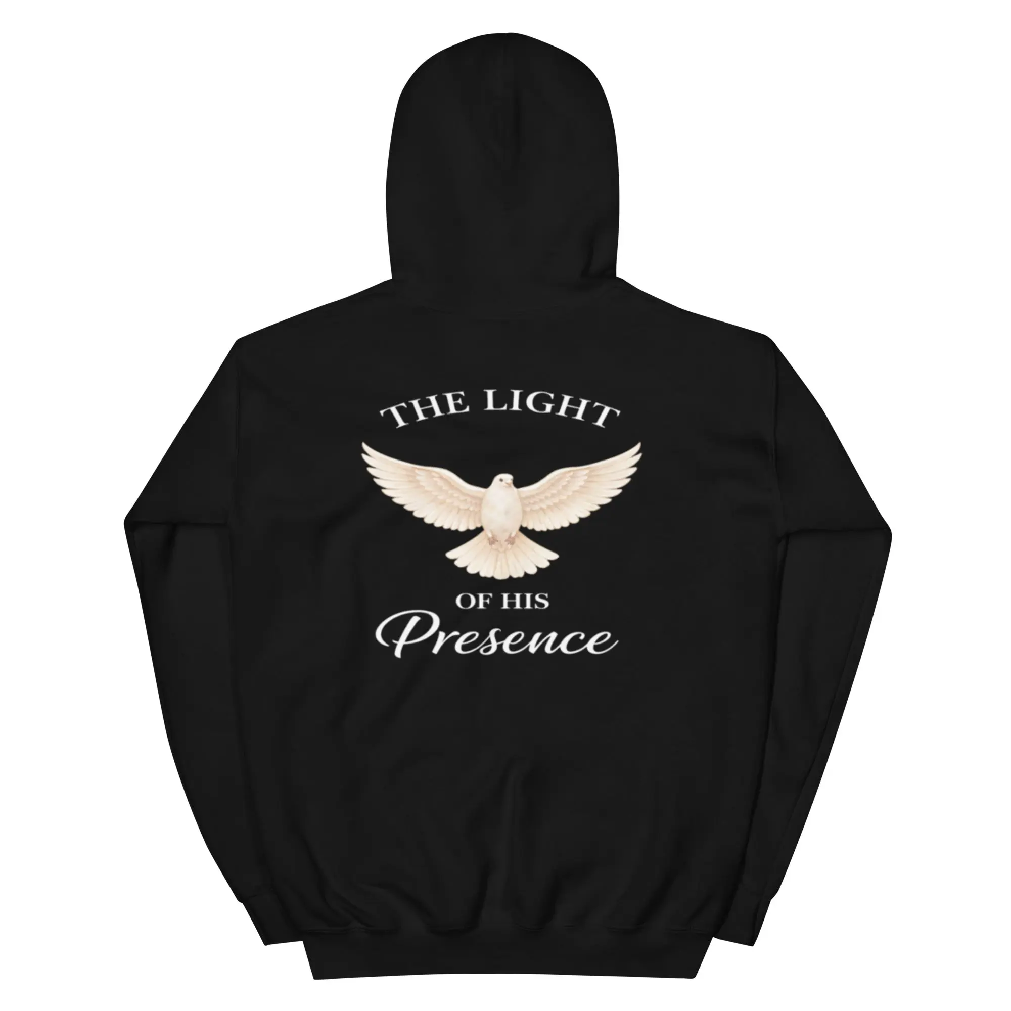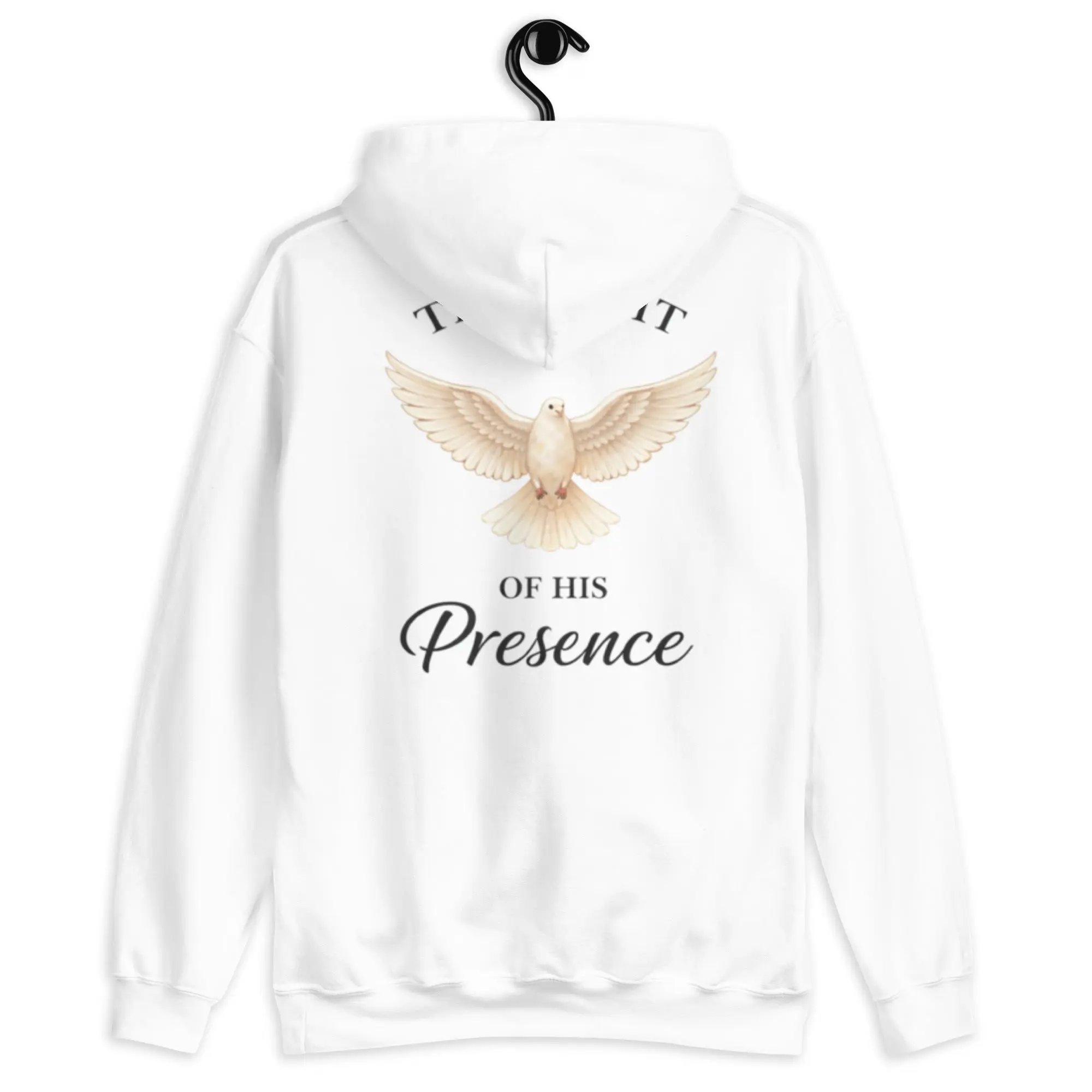 The Presence Hoodie features a minimal front dove and a powerful back design inspired by the peace, light, and presence of God. Designed for everyday wear with a message that speaks without saying too much.