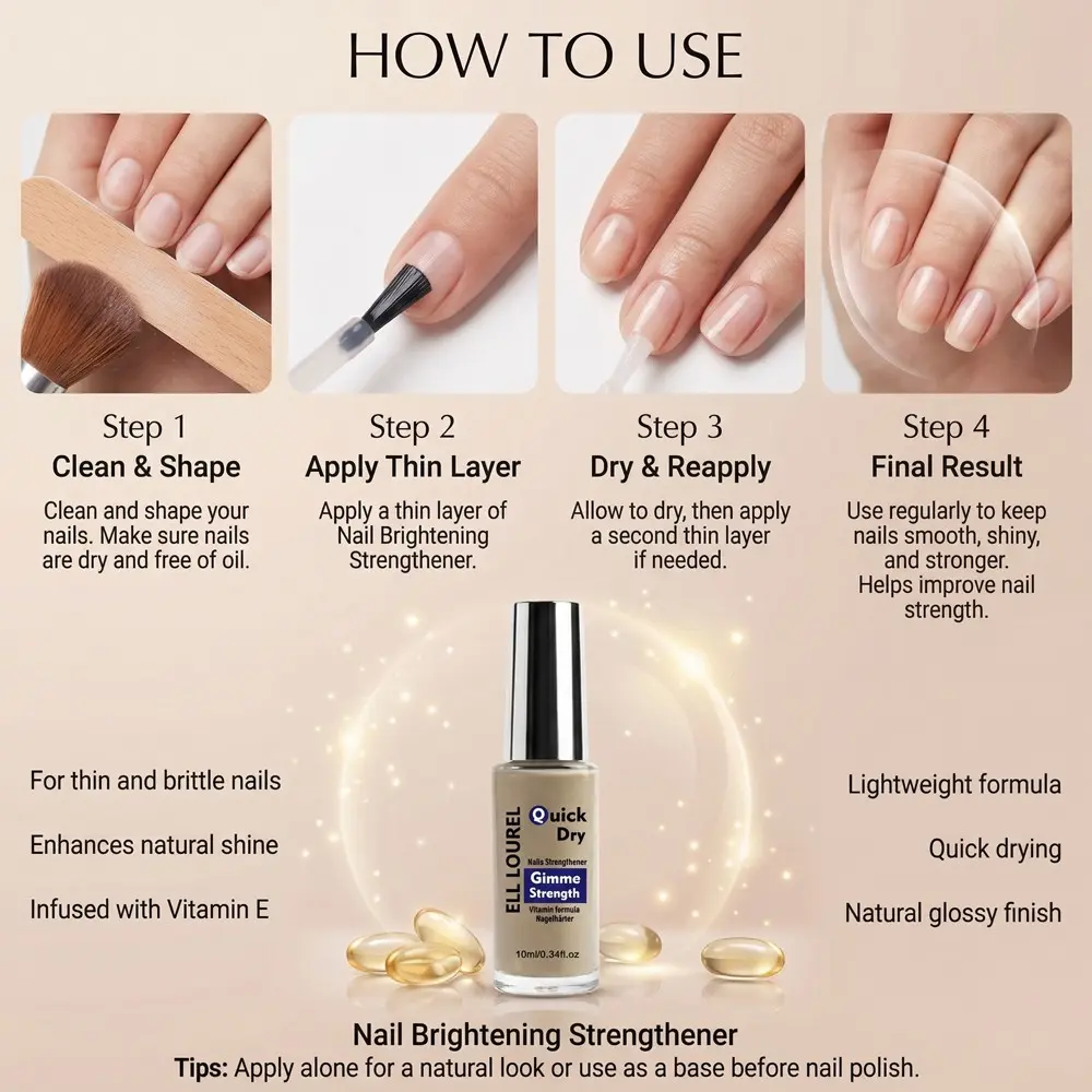 ELL LOUREL 10ml Gimme Strength Quick Dry Nail Strengthener - Vitamin Calcium Nail Hardener, Repairs Weak & Brittle Nails, Promotes Strong Nail Growth, High Shine Manicure Treatment, Perfect for Daily Nail Care, 0.34fl.oz,Promotes Strong Nail Growth