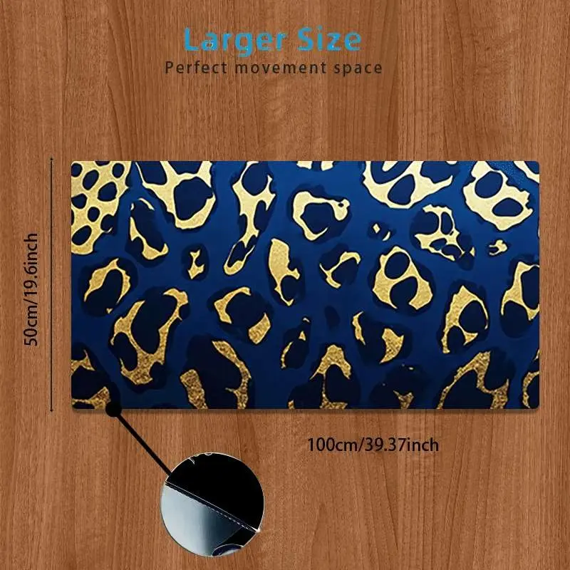 Blue Gold Leopard Print Mouse Pad, Durable Large Non-Slip Rubber Desk Mat, Gaming Office Accessory, Multi-Functional Keyboard Pad, Perfect Gift