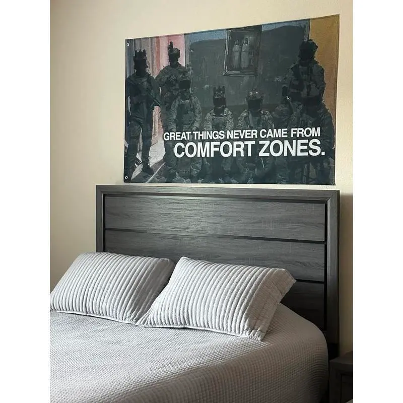 This No Comfort Zones Motivational Flag is a must-have for anyone who wants to stay motivated and push their limits.Measuring 5 by 3 feet, it's the perfect size to hang in any room and keep you inspired.