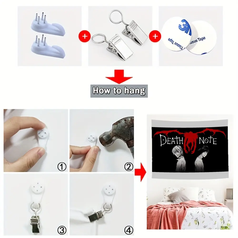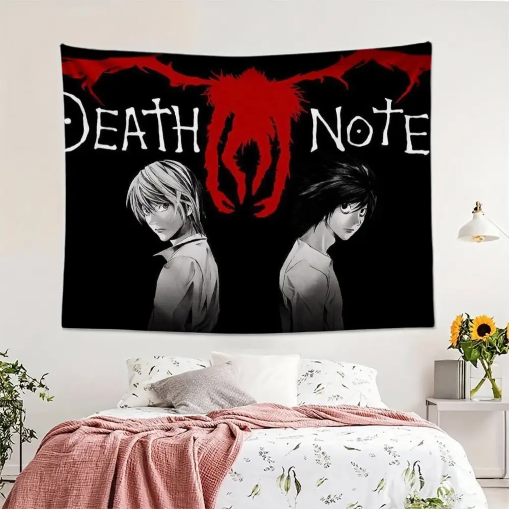 This tapestry features a striking Death Note design, perfect for anime enthusiasts.It measures 3x5ft, ideal for dorms or man caves.Made from premium polyester, it includes 4 grommets for easy hanging.The solid color and modern stripe design add a stylish touch.Enhance your space with this decorative banner.