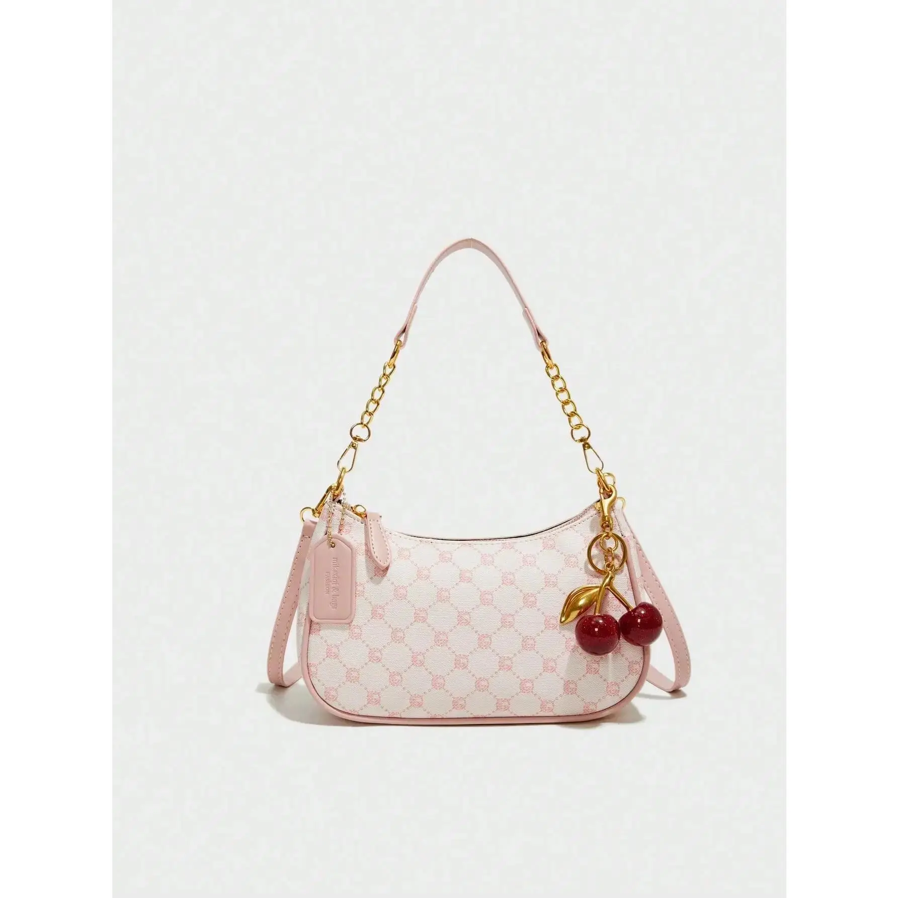 Pink Bag for Women Cute Chain Purse Everyday Shoulder Bag with Adjustable Strap and Zipper Closure Fashionable PU Material