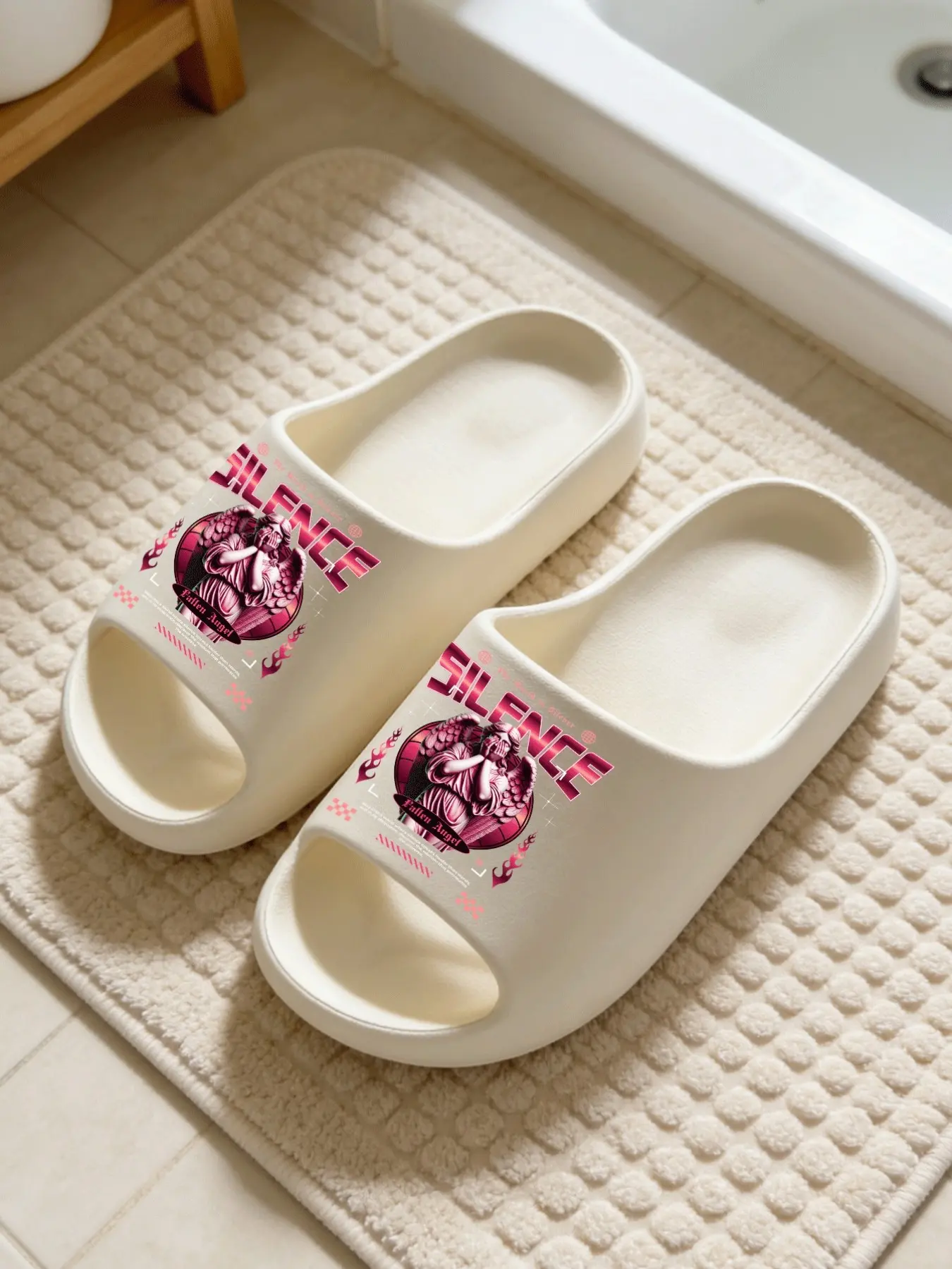 Angel Print Fashion Slippers, Cyberpunk Style, Thick Sole Soft Bottom, Couples Home Outdoor Use, Asymmetrical Design, Eva Material