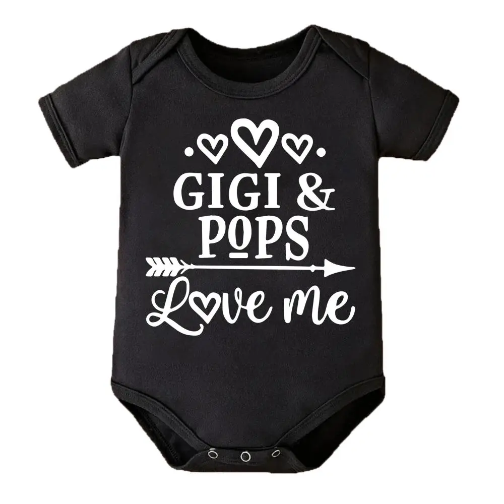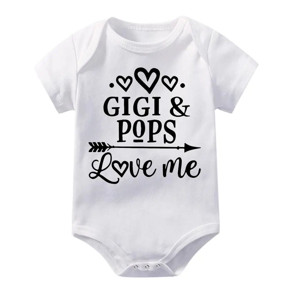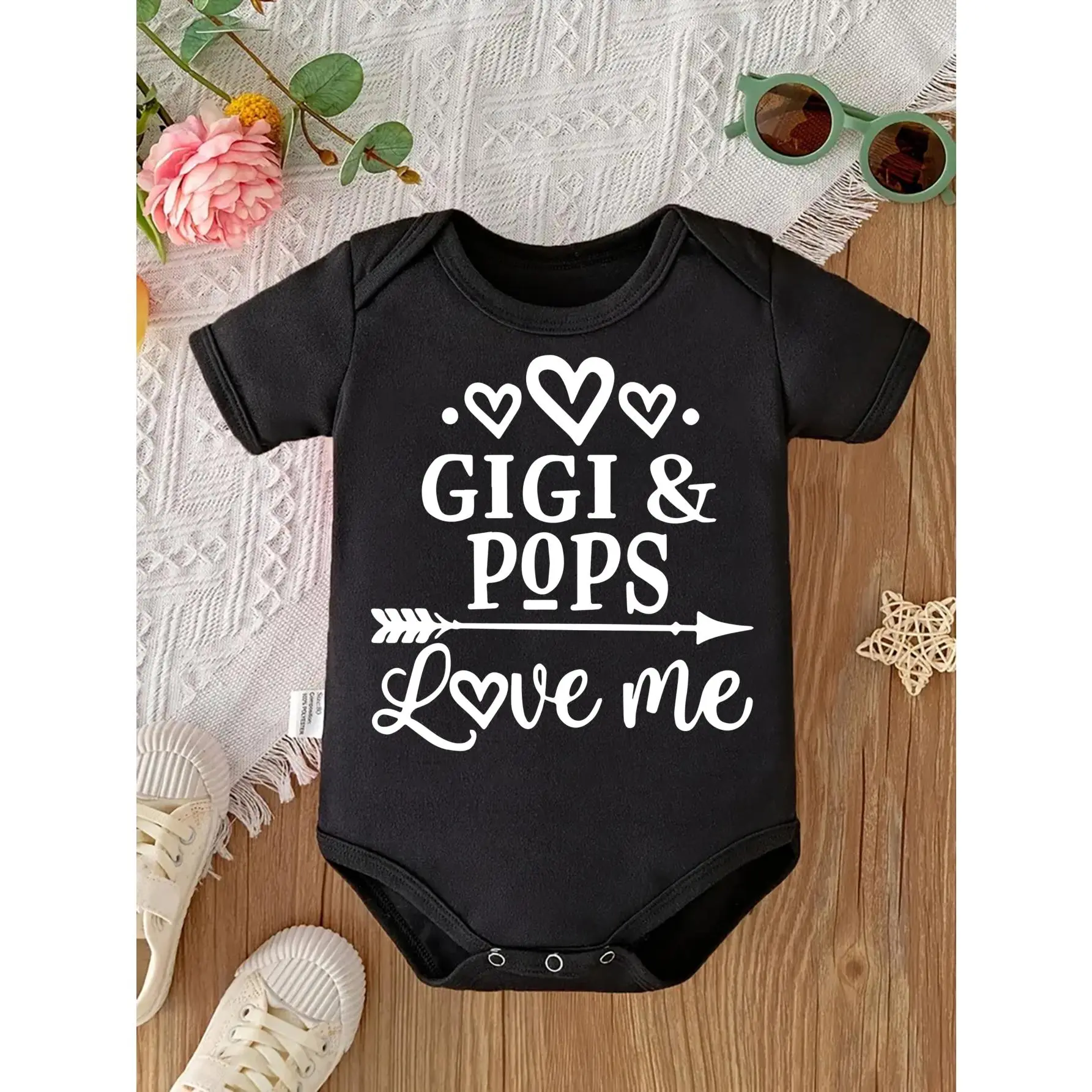 Cute Baby Bodysuit With Gigi And Pops Love Me Print Soft Versatile Round Neck Button Detail Regular Fit All Seasons Knitted Fabric Onesie