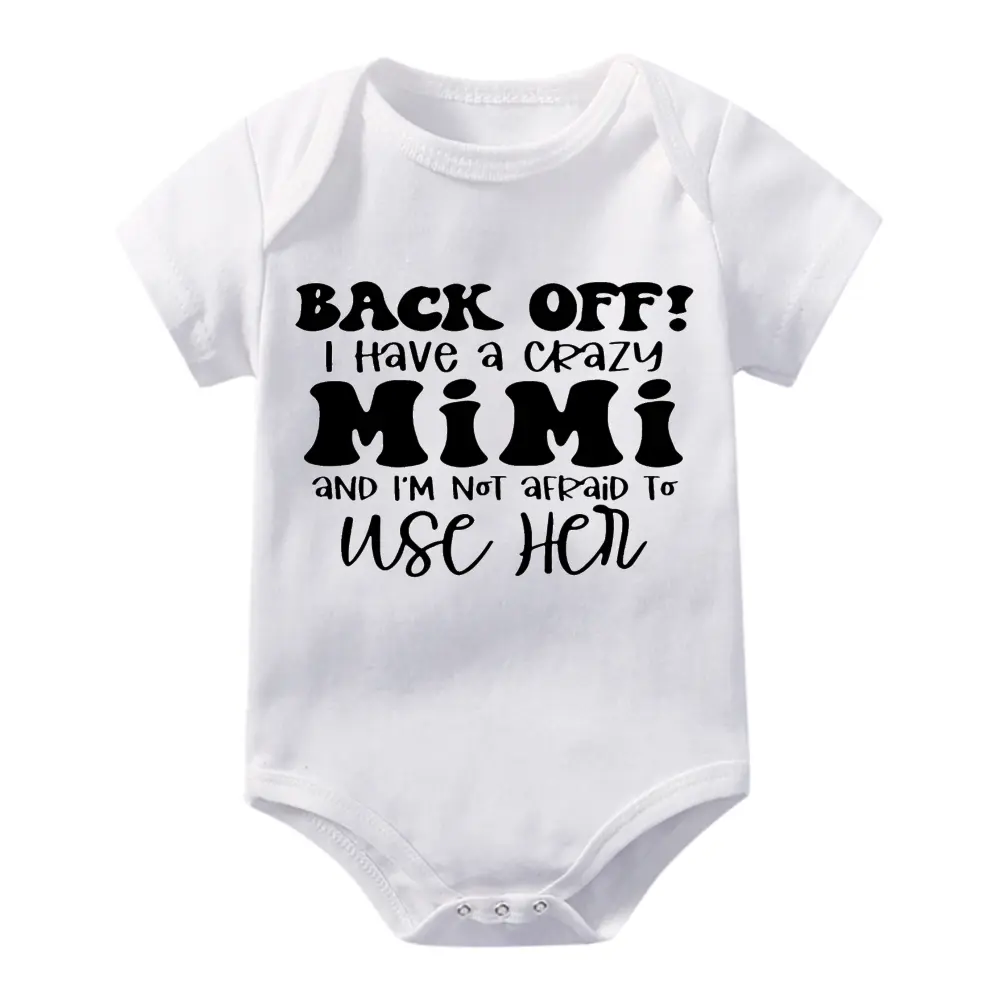 Cute Baby Bodysuit With Back Off I Have A Crazy Mimi And Im Not Afraid To Use Her Print Soft Versatile Round Neck Button Detail Regular Fit All Seasons Knitted Fabric Onesie