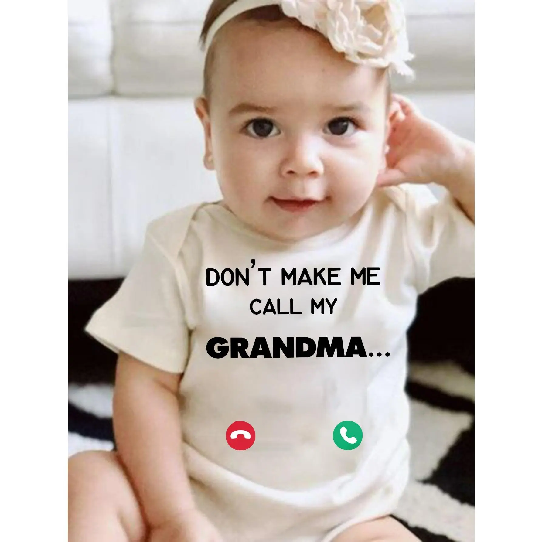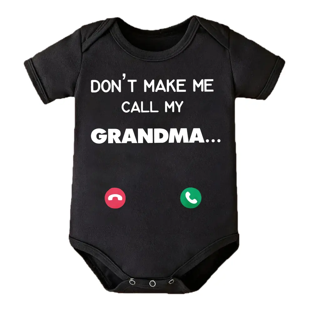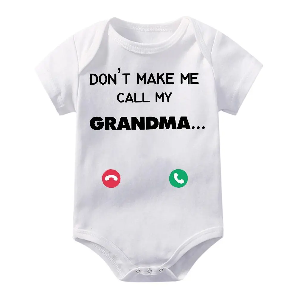Cute Baby Bodysuit With Don T Make Me Call My Grandma Print Soft Versatile Round Neck Button Detail Regular Fit All Seasons Knitted Fabric Onesie