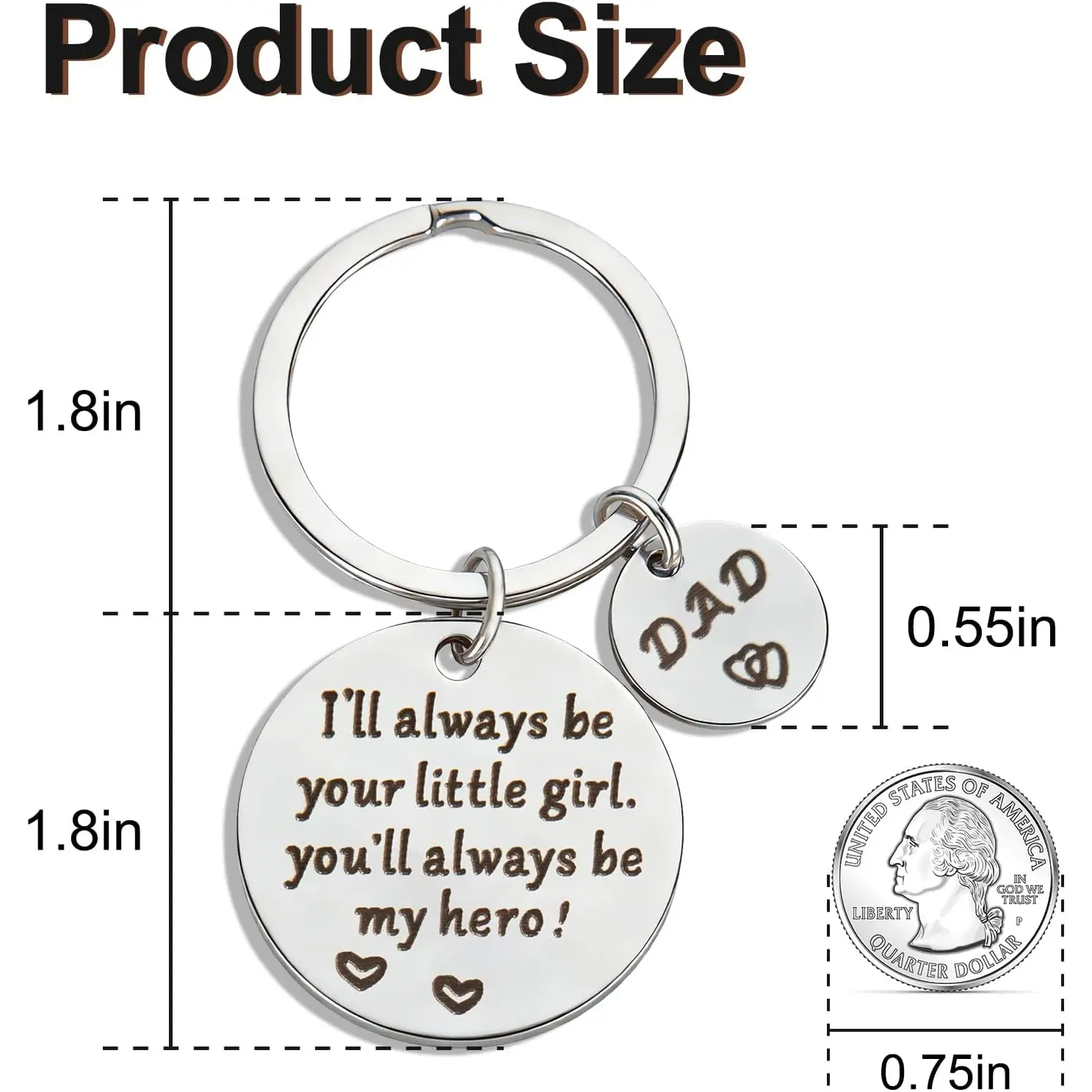 Portable Accessory: The keychain is compact and lightweight, with a main tag diameter of 1.18 inches and a small tag diameter of 0.55 inches. It can easily be attached to keys, backpacks, or luggage, allowing fathers to feel the warmth with every use.