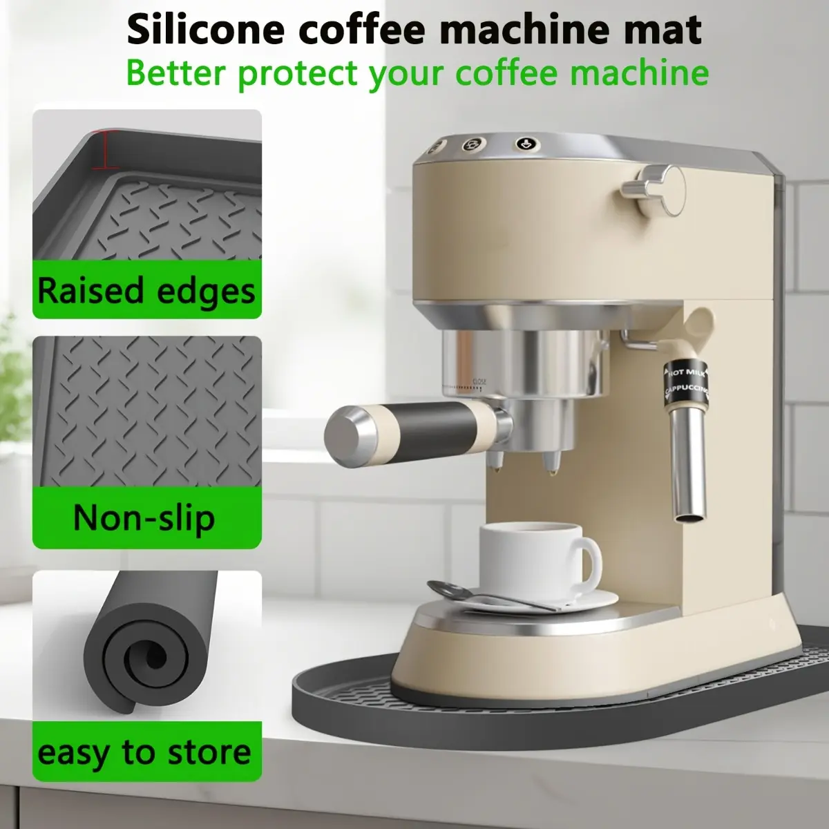 1PC Coffee Machine Countertop Silicone Mat, Non-Slip Kitchen Appliance Base Pad with Raised Edge to Contain Water and Coffee Spills, Durable Protective Mat for Coffee Maker, Juicer and Mixer