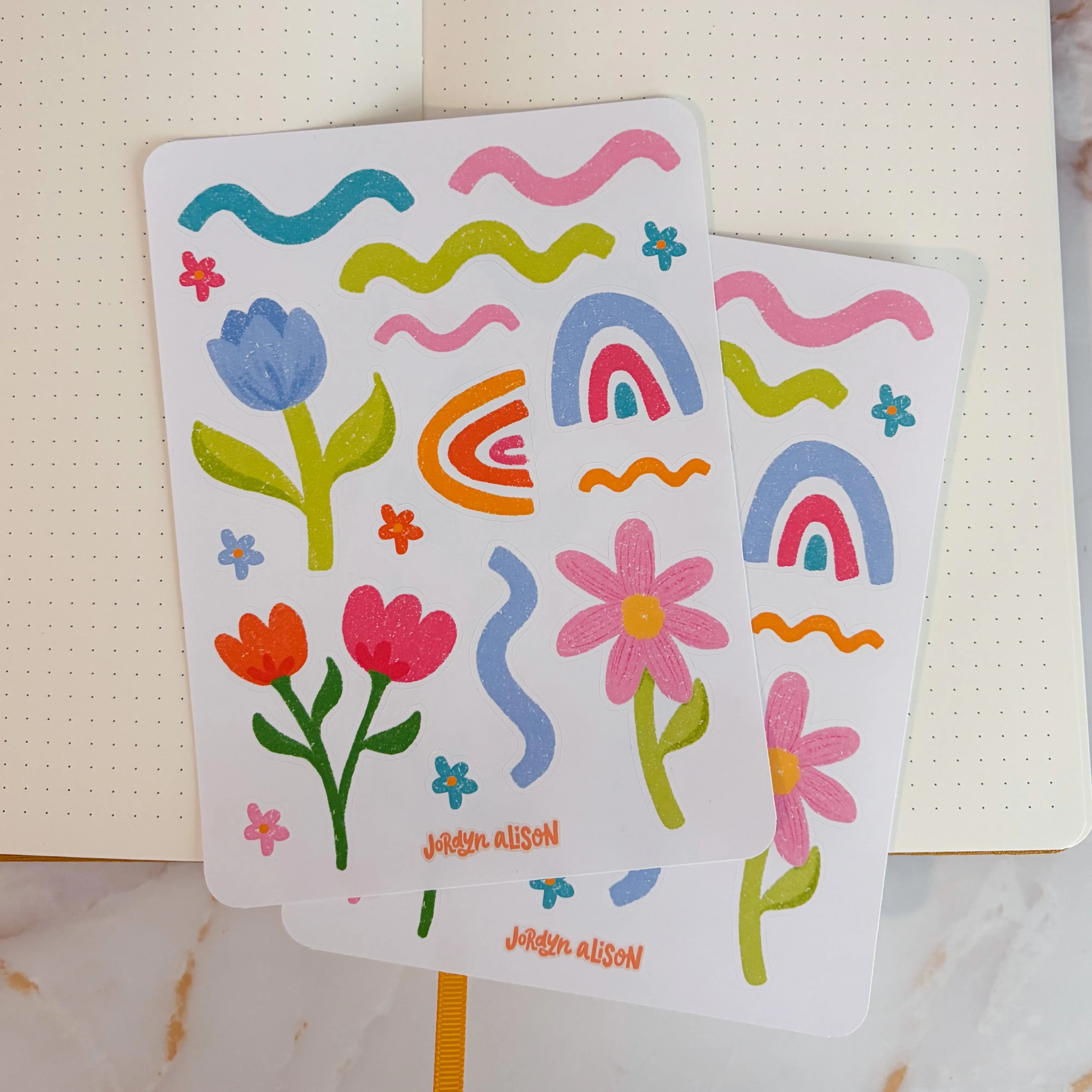 Bring your journaling projects to life with these Spring Doodles Sticker Sheets. Kiss cut stickers are easy to peel and ready for your junk journals, reading journals, scrapbooks, or planners!