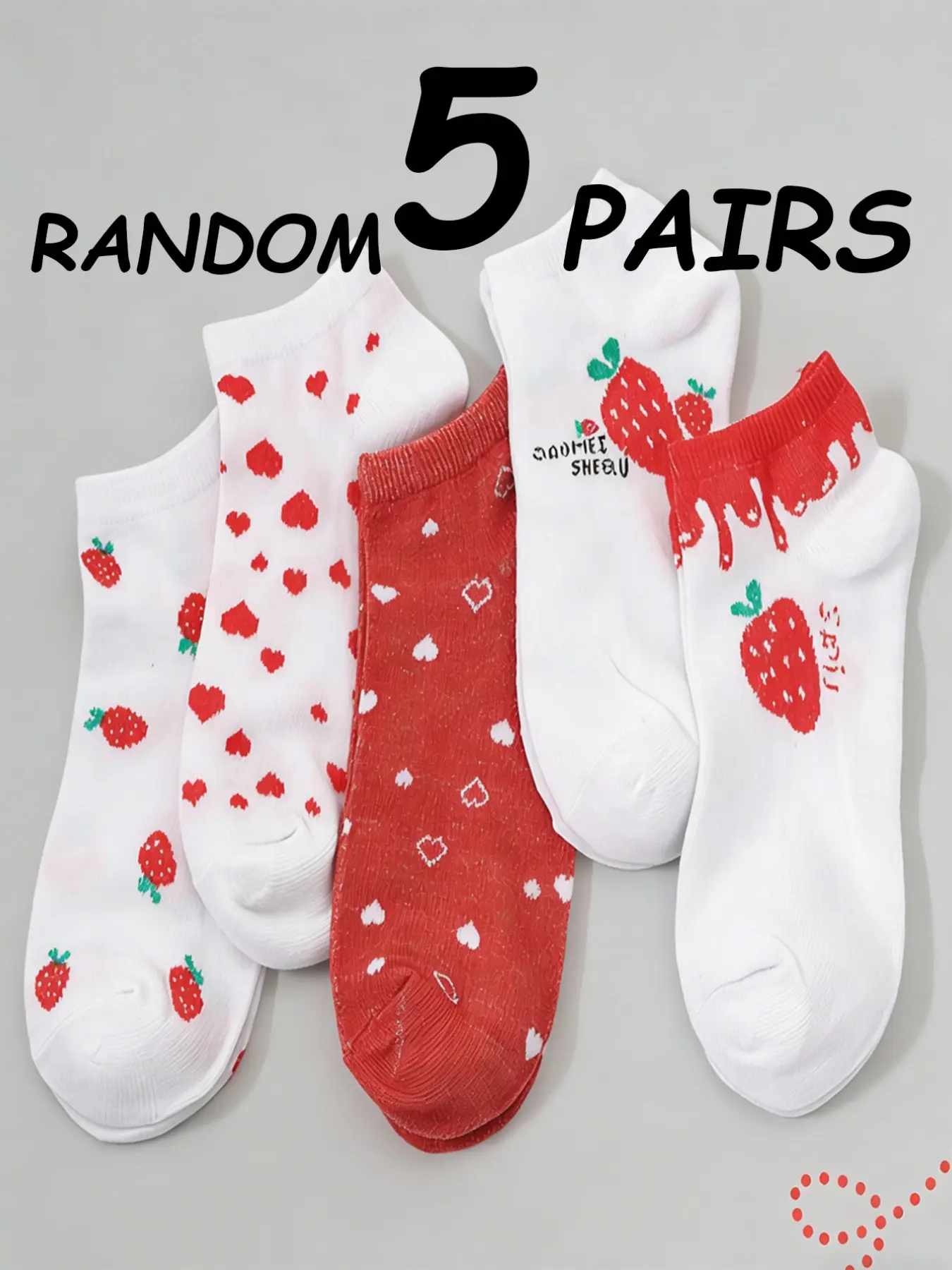 5 Pairs Random Strawberry Heart Series Girl Short Socks, Cute and Trendy Design, Perfect for Daily Wear, Comfortable and Stylish