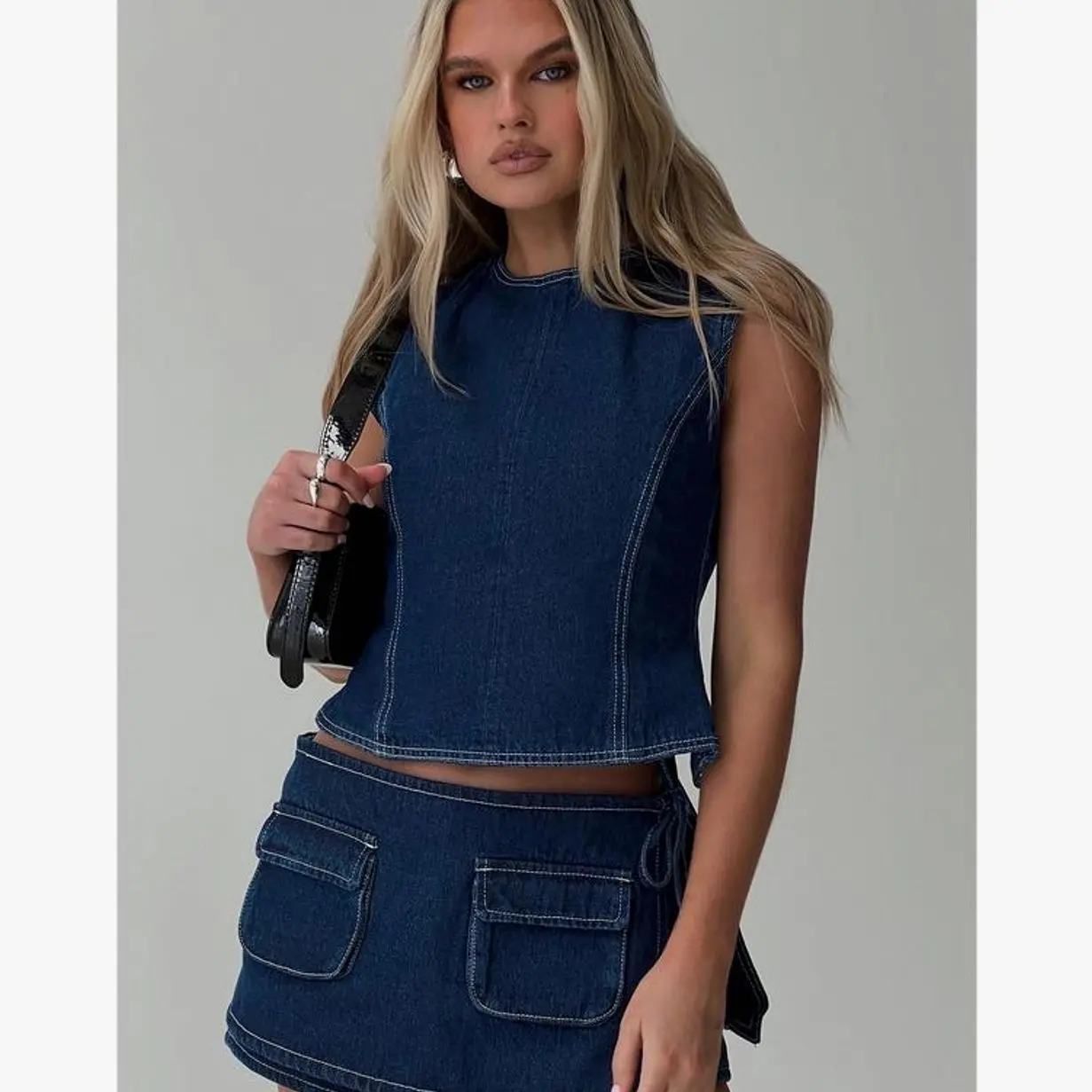 Open back denim top