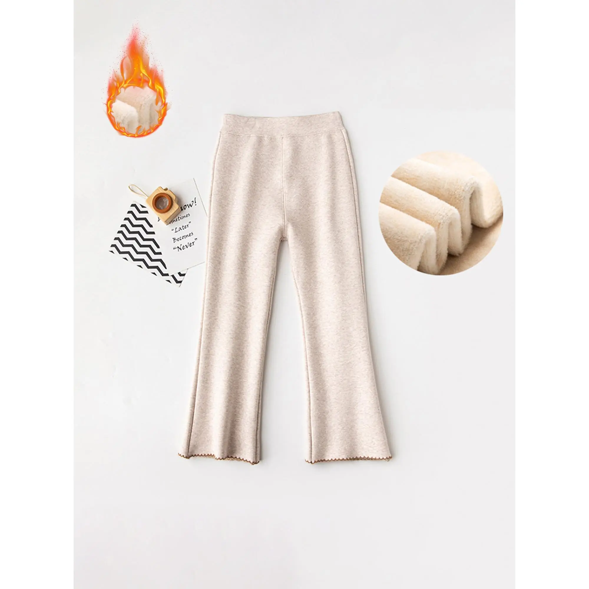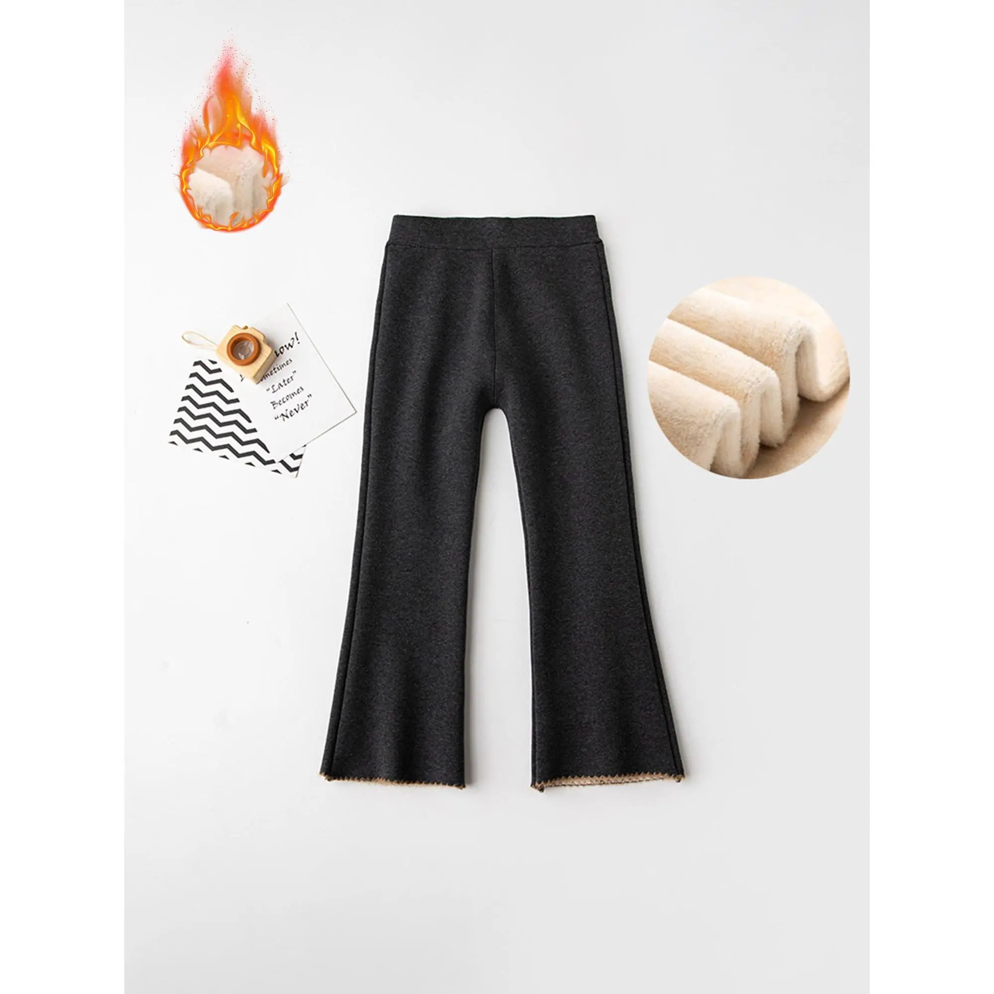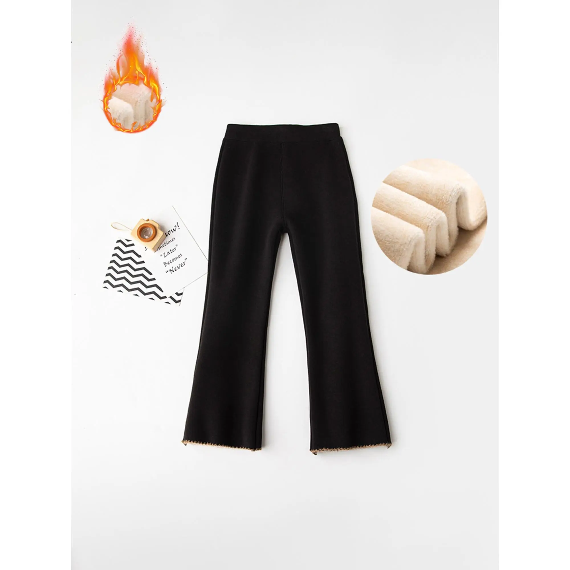 Girls' Fleece-Lined Thickened Flared Pants - Korean-Style Slim-Fit Winter Warmth with Elastic Waist & Flared Leg, Soft Fleece Lining, Loose Fit Casual Pants for Fall/Winter, Solid (Candy-Colored Options Available) - Everyday & Special Occasion Outfi