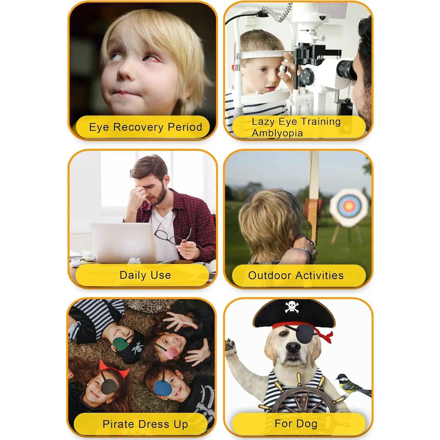 Our eye patch is made of soft & smooth materials, comfortable and breathable. Color: black, blue, pink, red, green.