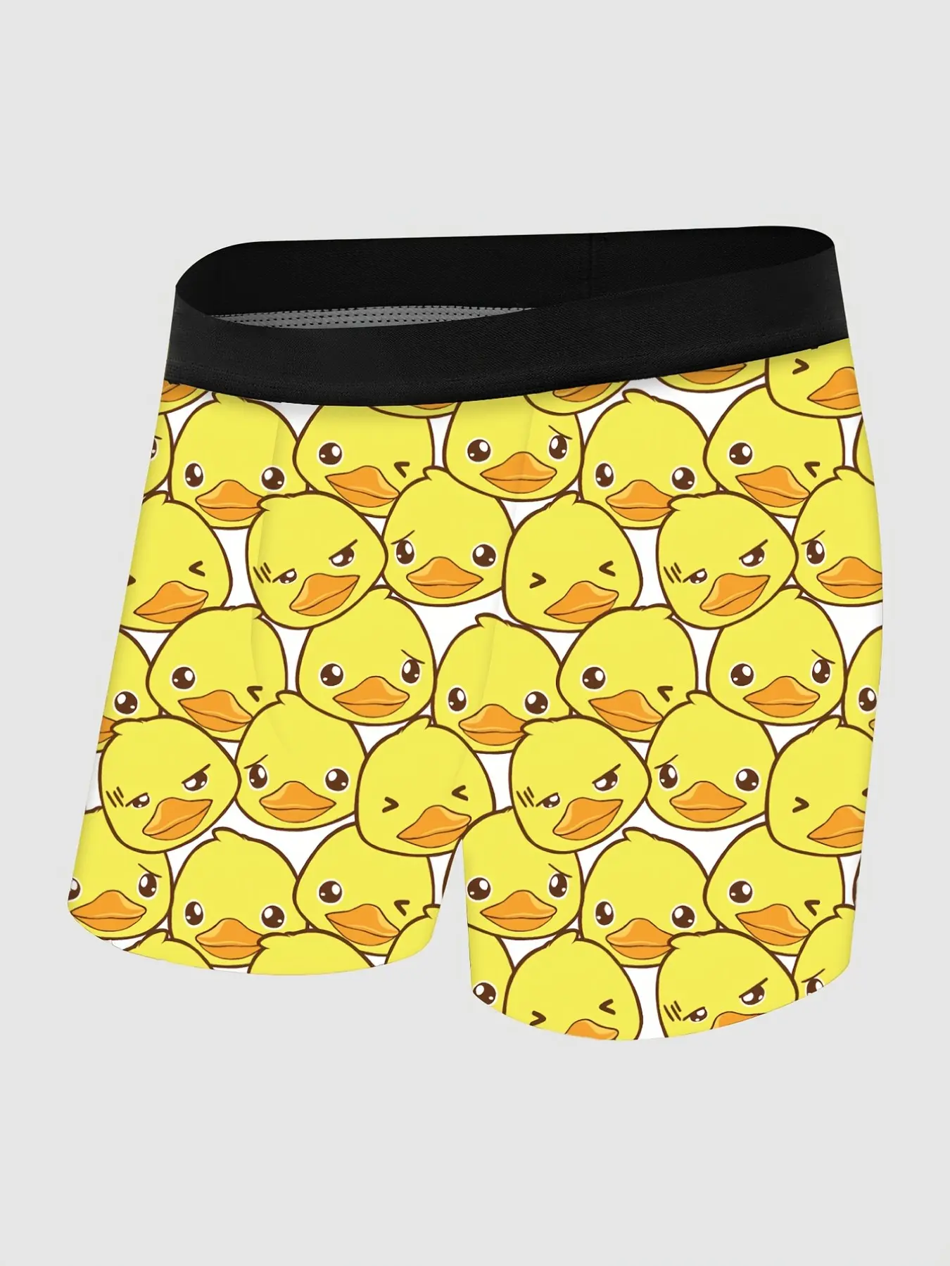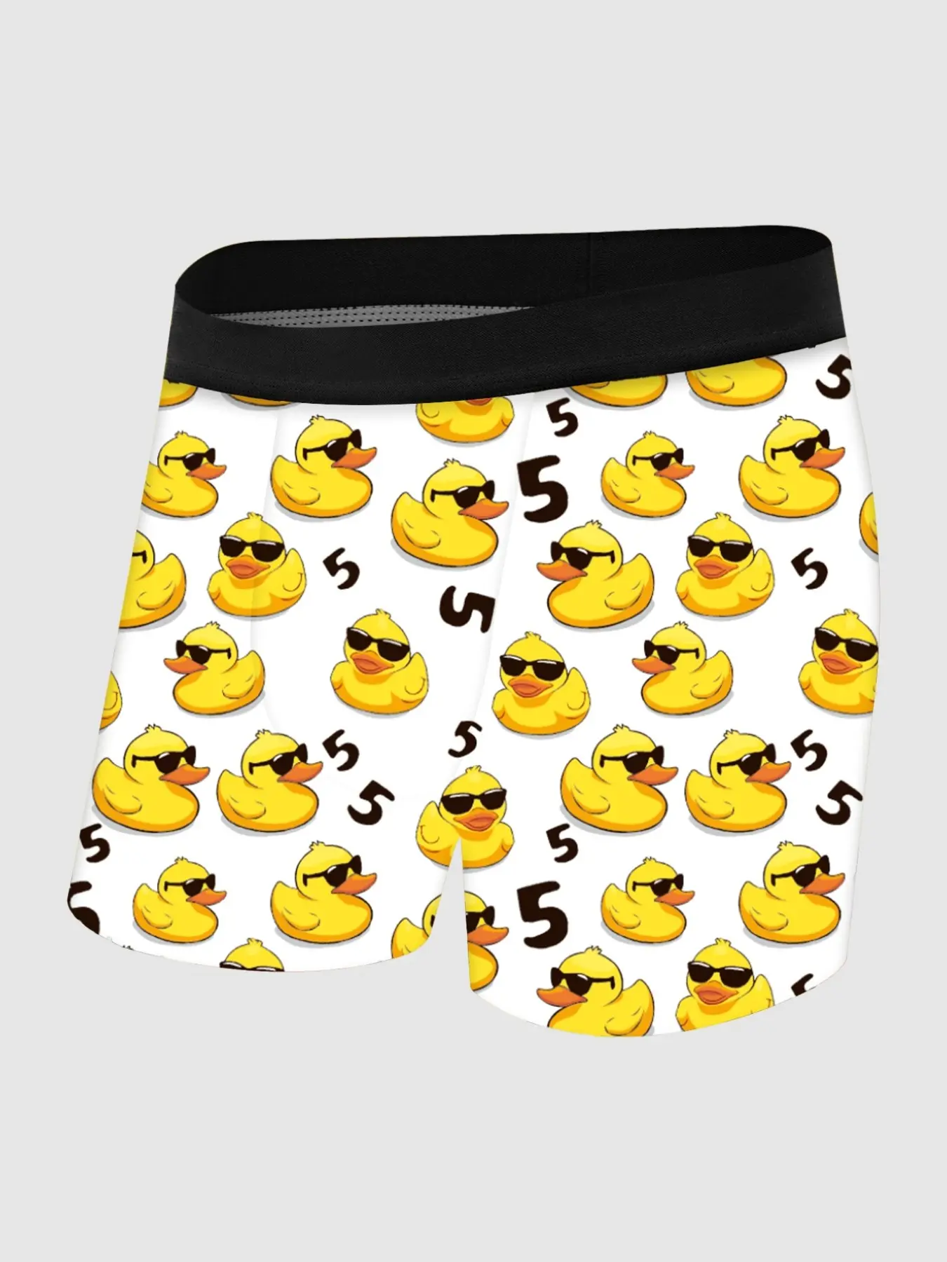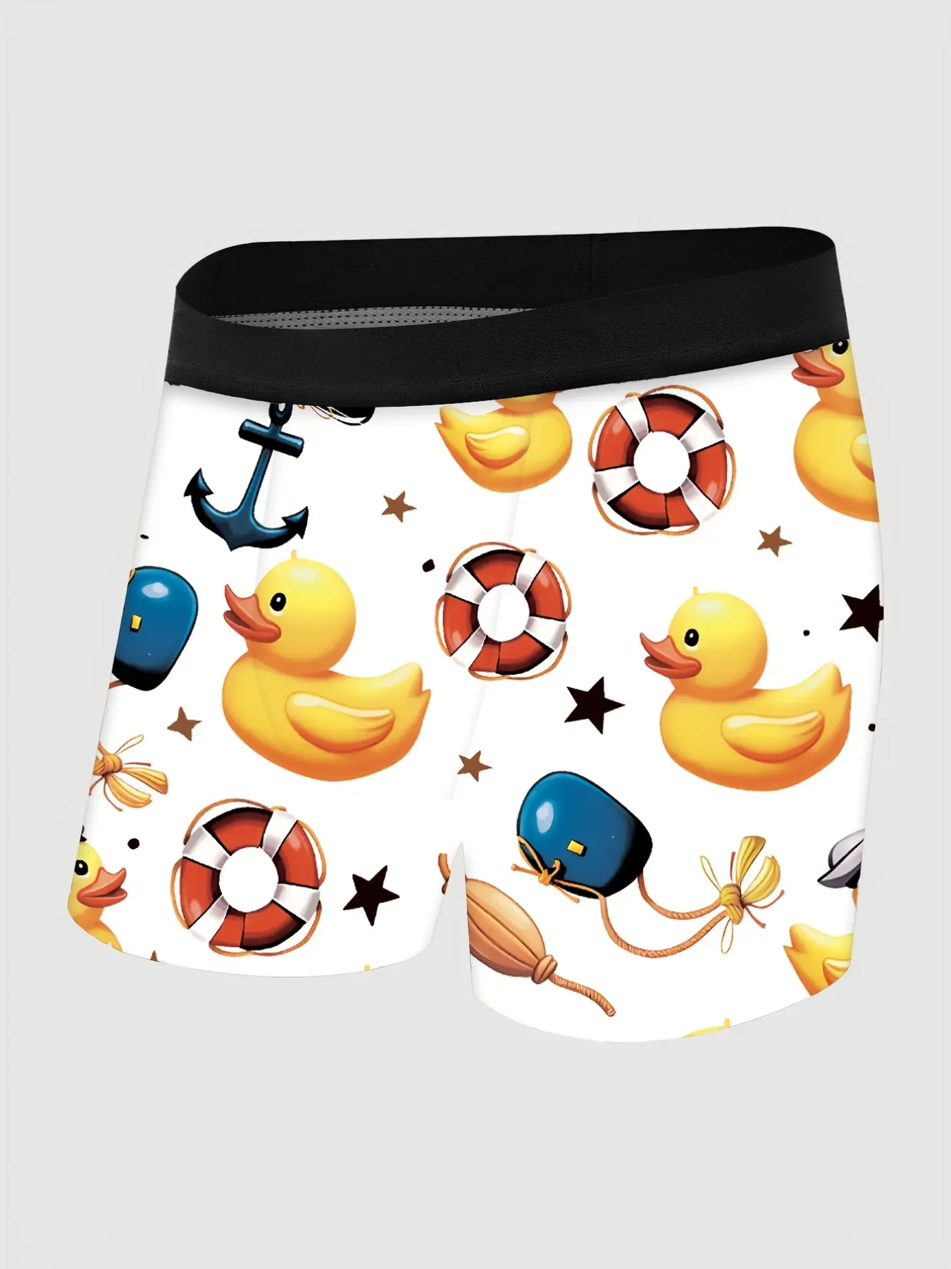 Men's Multicolor Cartoon Rubber Duck Print Swim Trunks, Pack of 3, Knitted Fabric, Medium Stretch, Basic Style, No.5 Design