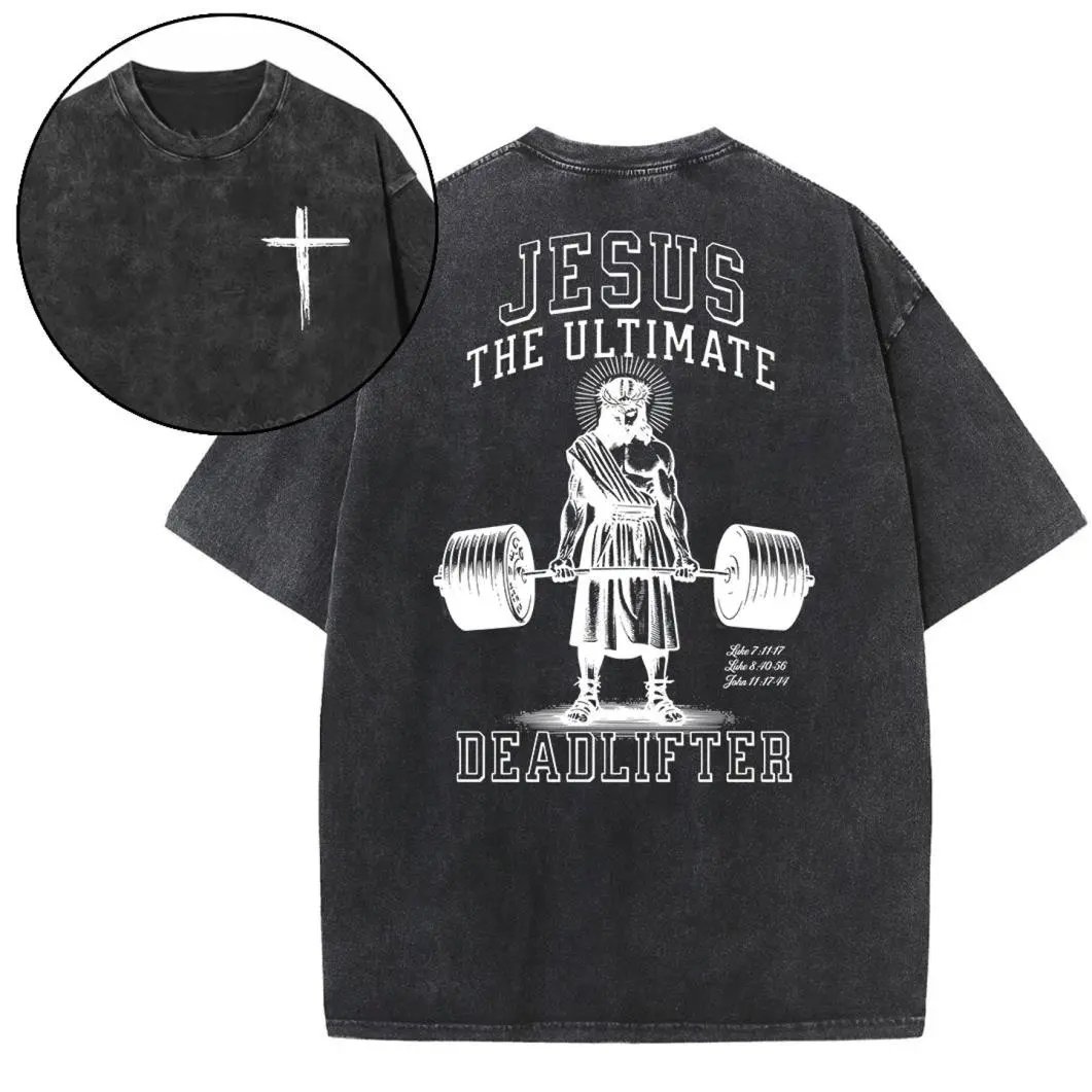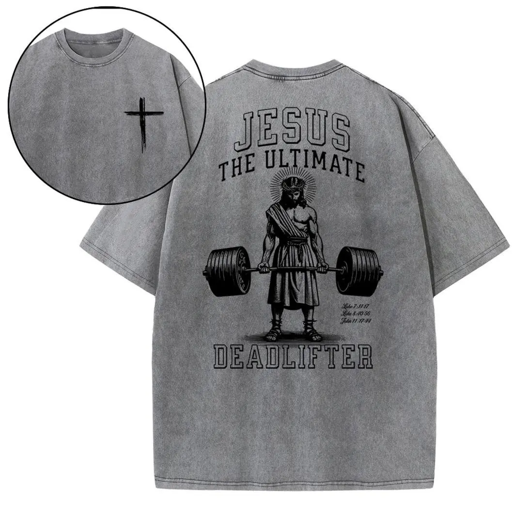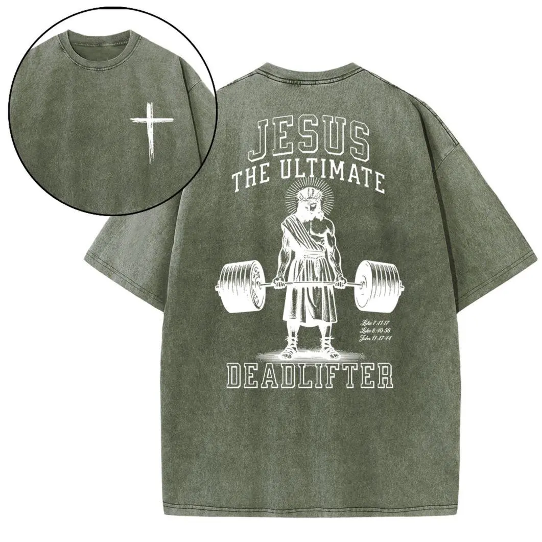 5. Jesus The Ultimate Deadlifter Christian Washed T-Shirt