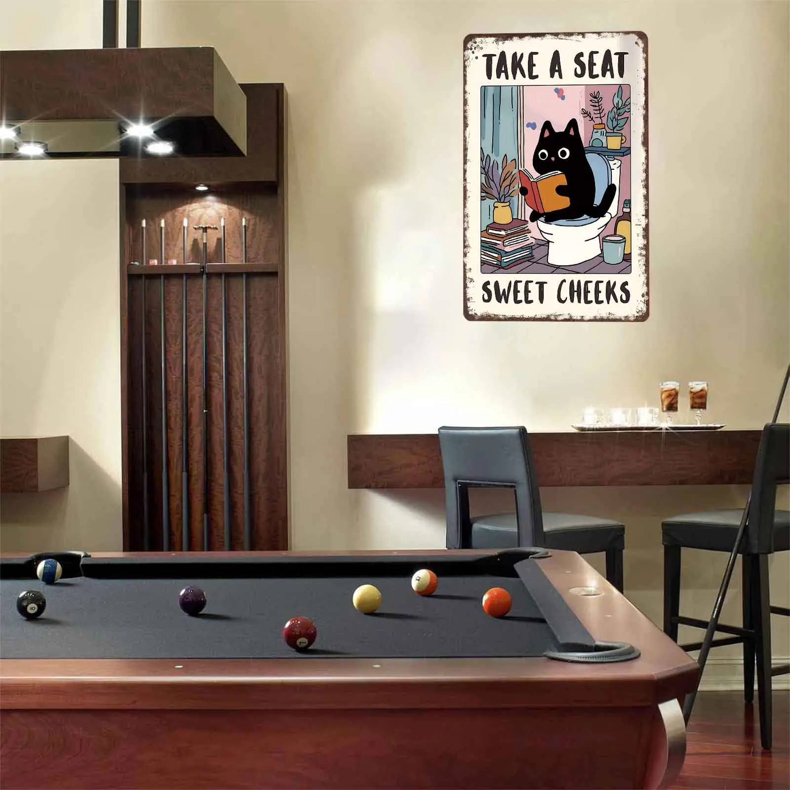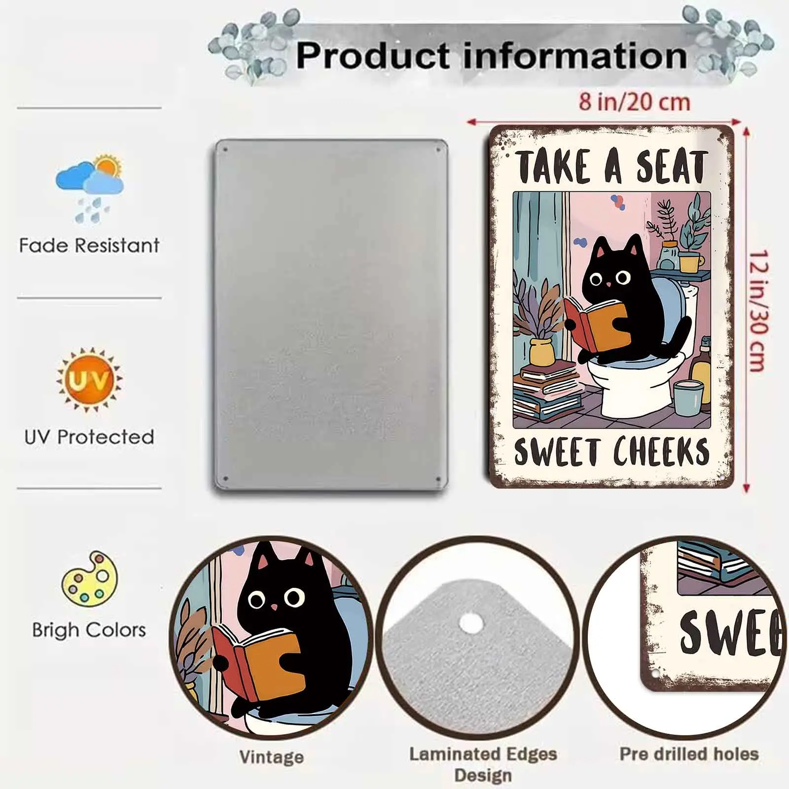 8x12 Inch Aluminum Metal Sign - "Take A Seat Sweet Cheeks" Cute Black Cat Bathroom Decor | Ideal for Home, Guest Bathroom, Salon, and Cat Lovers' Space | Whimsical Tin Plaque, Easy to Mount, Perfect Housewarming Gift