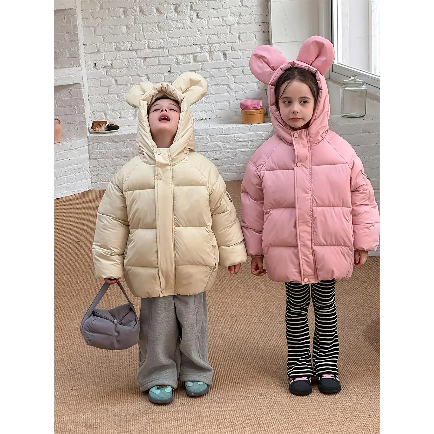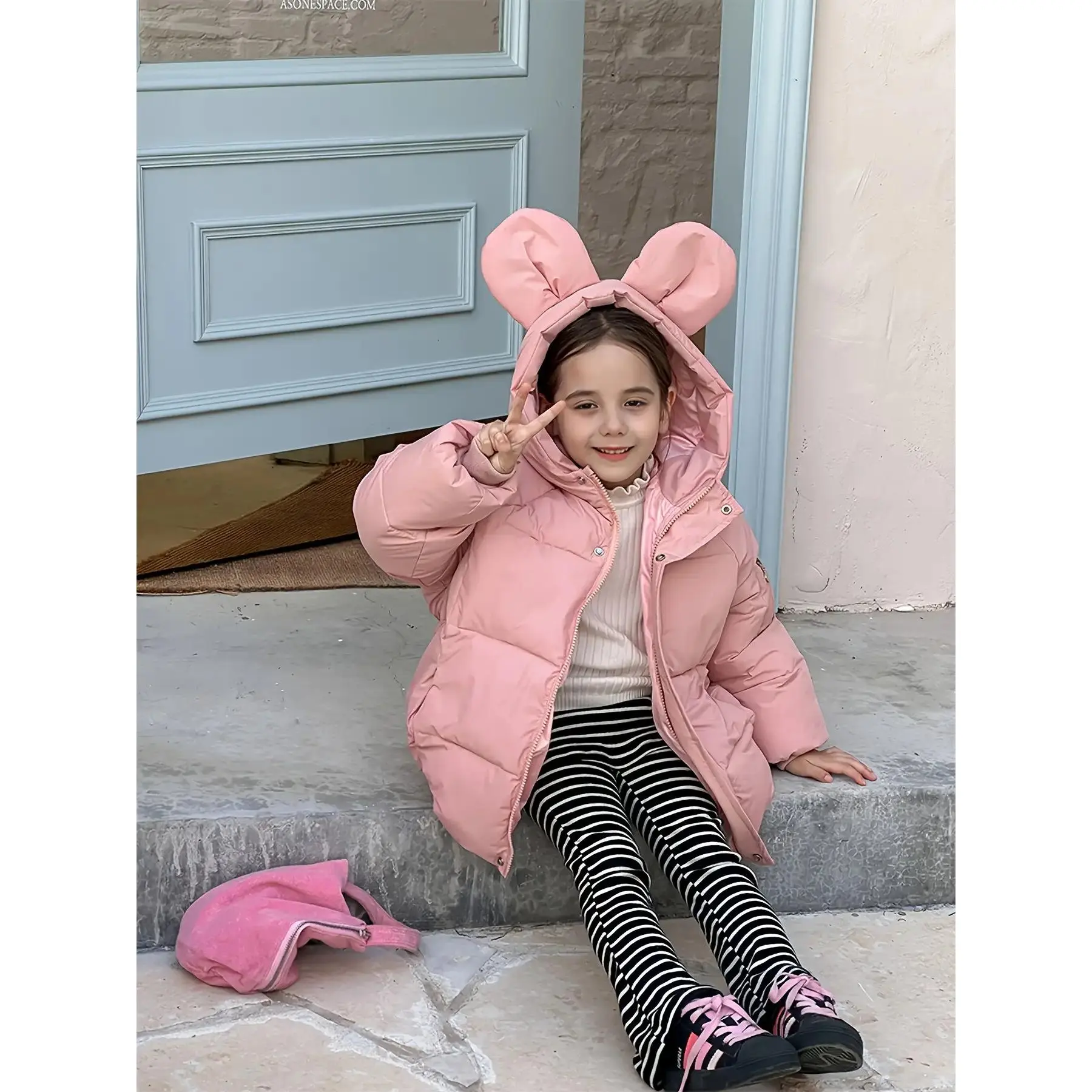 Girls' Winter Coat - Thickened Cold Weather Jacket with Hood, Easy Button Front Closure, Warm Outerwear for & Little Girls, Cute Everyday & Special Occasion Outfit (Birthday/Party) - Cozy Winter Clothing, Winter Jacket, Kids Party Wear, Playful Kids Fashi