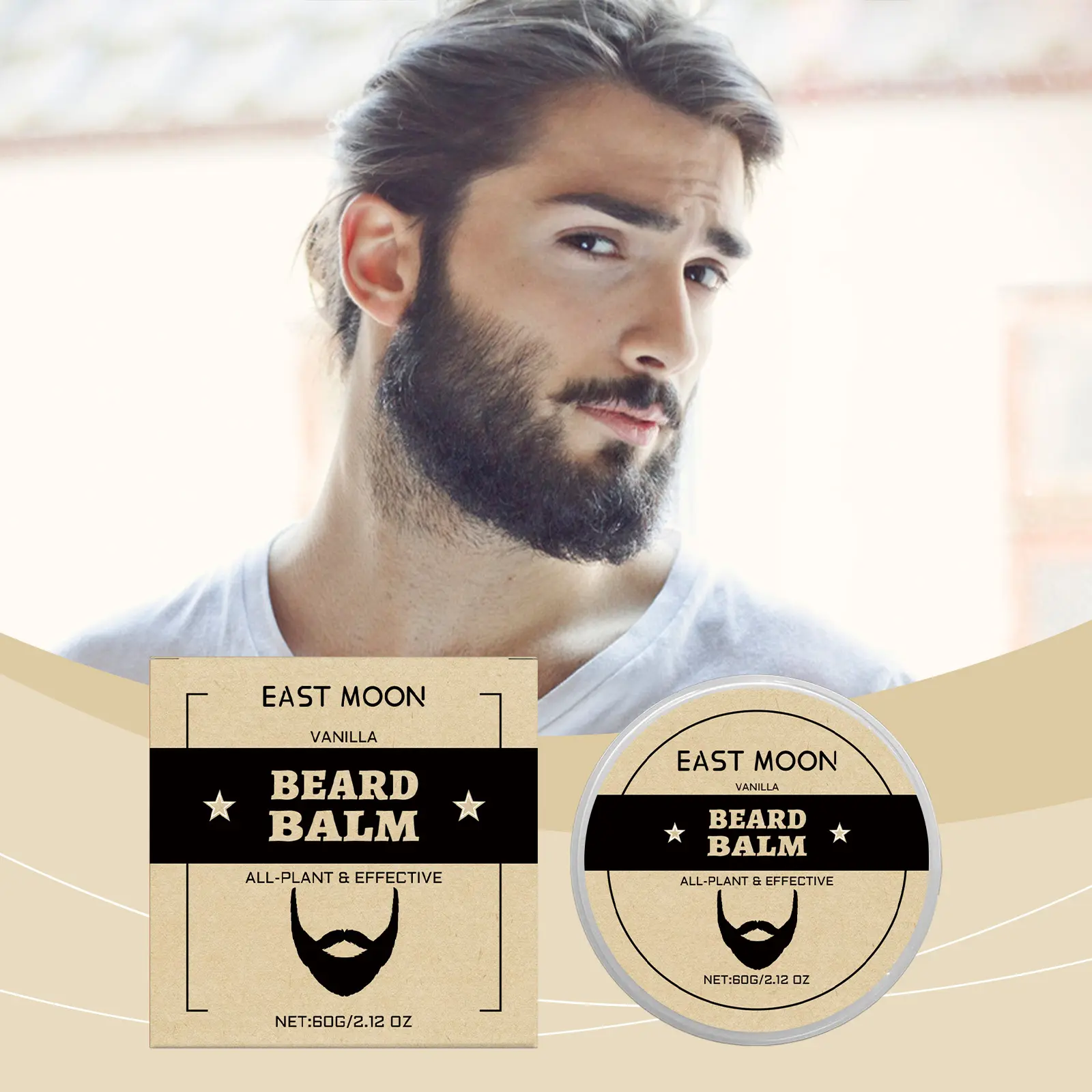 East Moon Vanilla Men's Beard BalmInfused with Beeswax & Vitamin E to deeply nourish your beard and the skin underneath, improve skin texture, and reduce dryness. Soothes itchiness, tames frizz, and makes your beard smooth, soft, manageable, and easy to style. How to use: 1. Clean and dry your beard. 2. Apply a proper amount evenly over your beard. 3. Gently massage until fully absorbed. With a pleasant vanilla scent for daily grooming and styling.