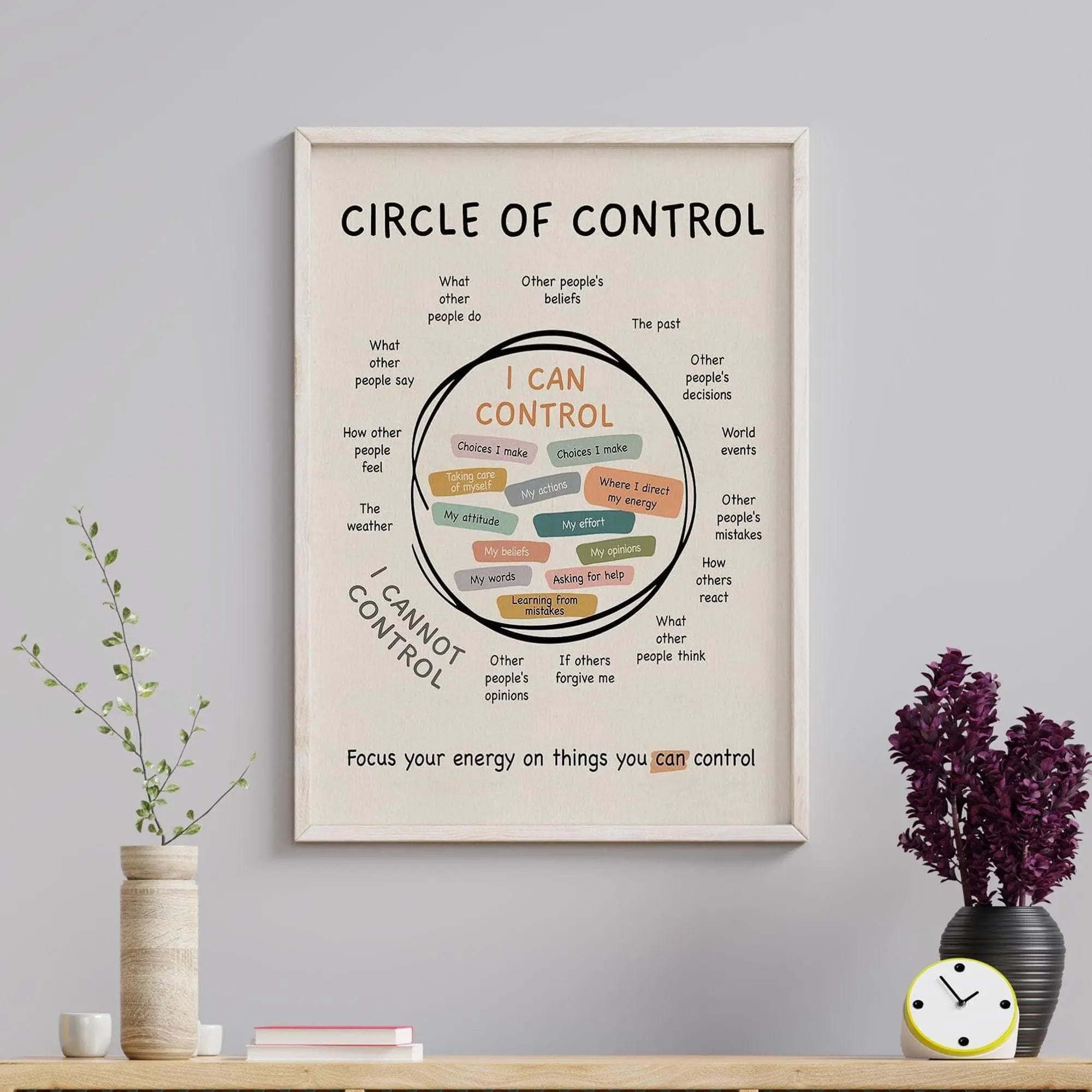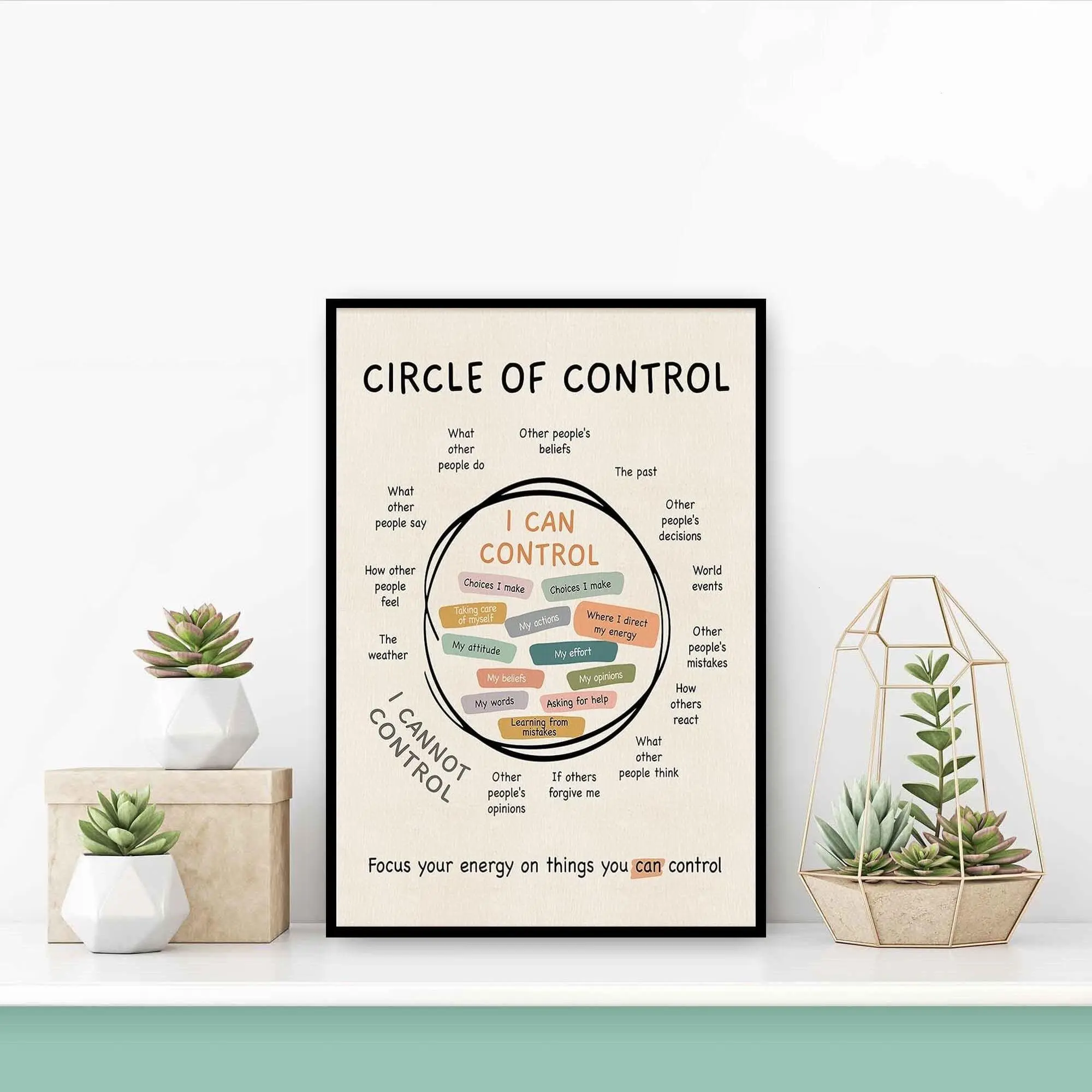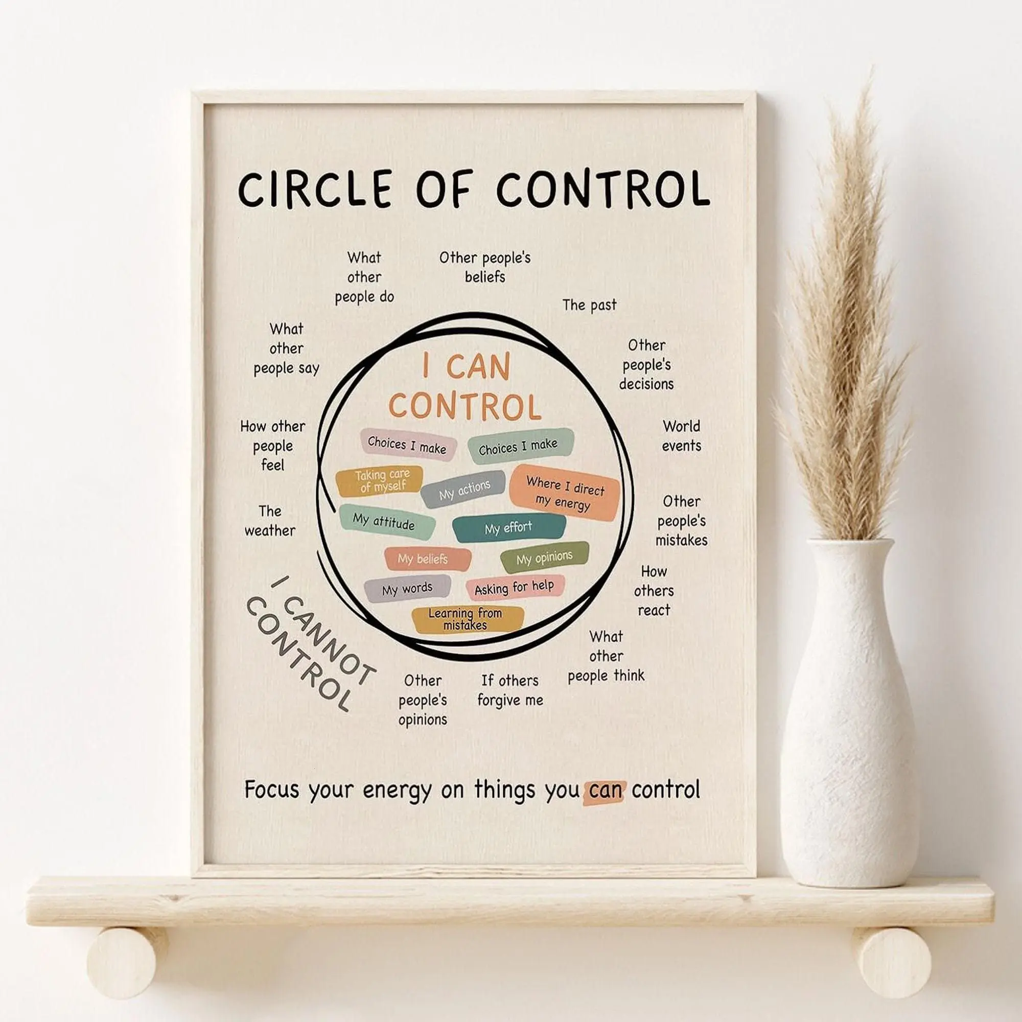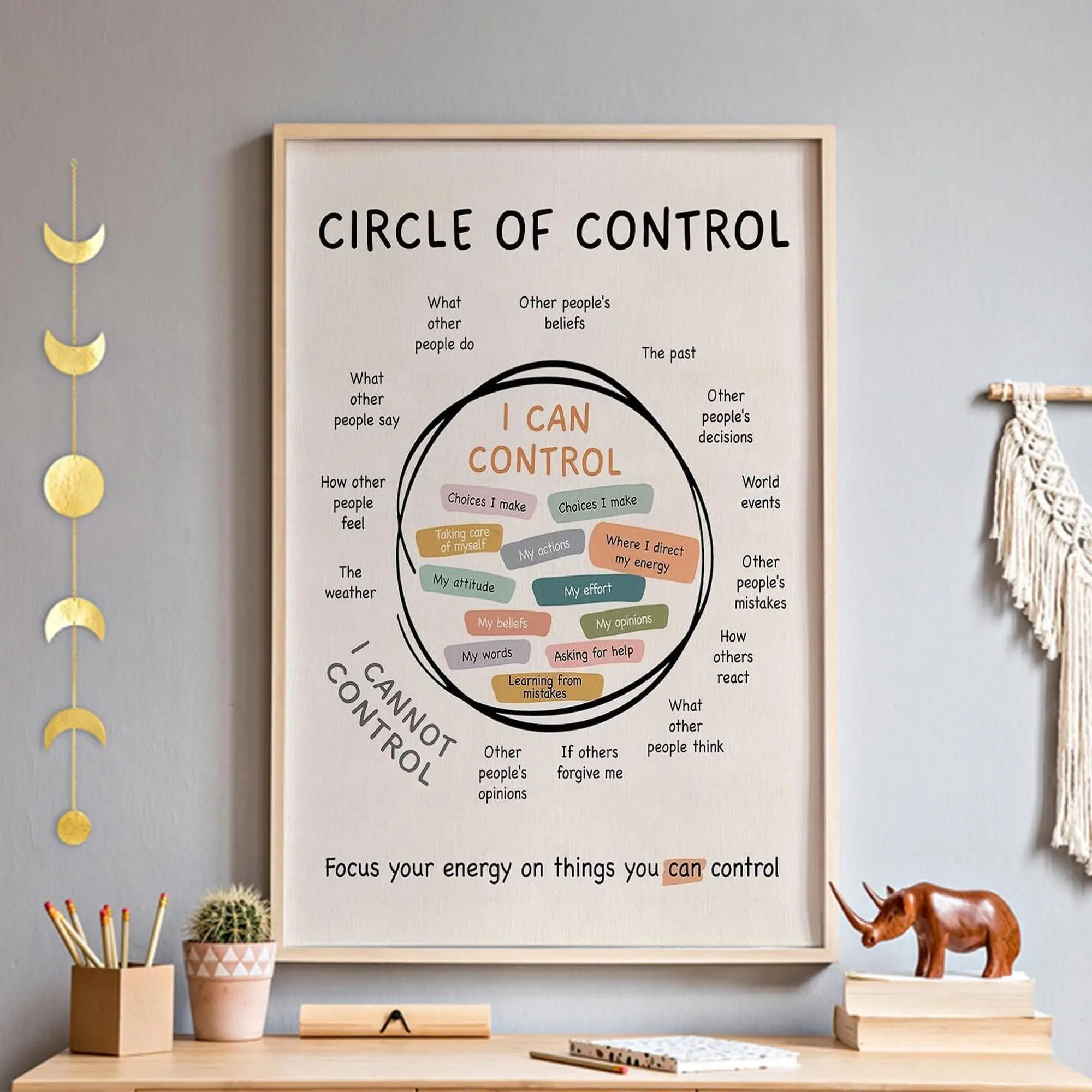 Circle Of Control Wall Art, Mental Health Growth Mindset Poster, Positive Inspirational Therapy Office Gift For Her, Mindfulness Questions