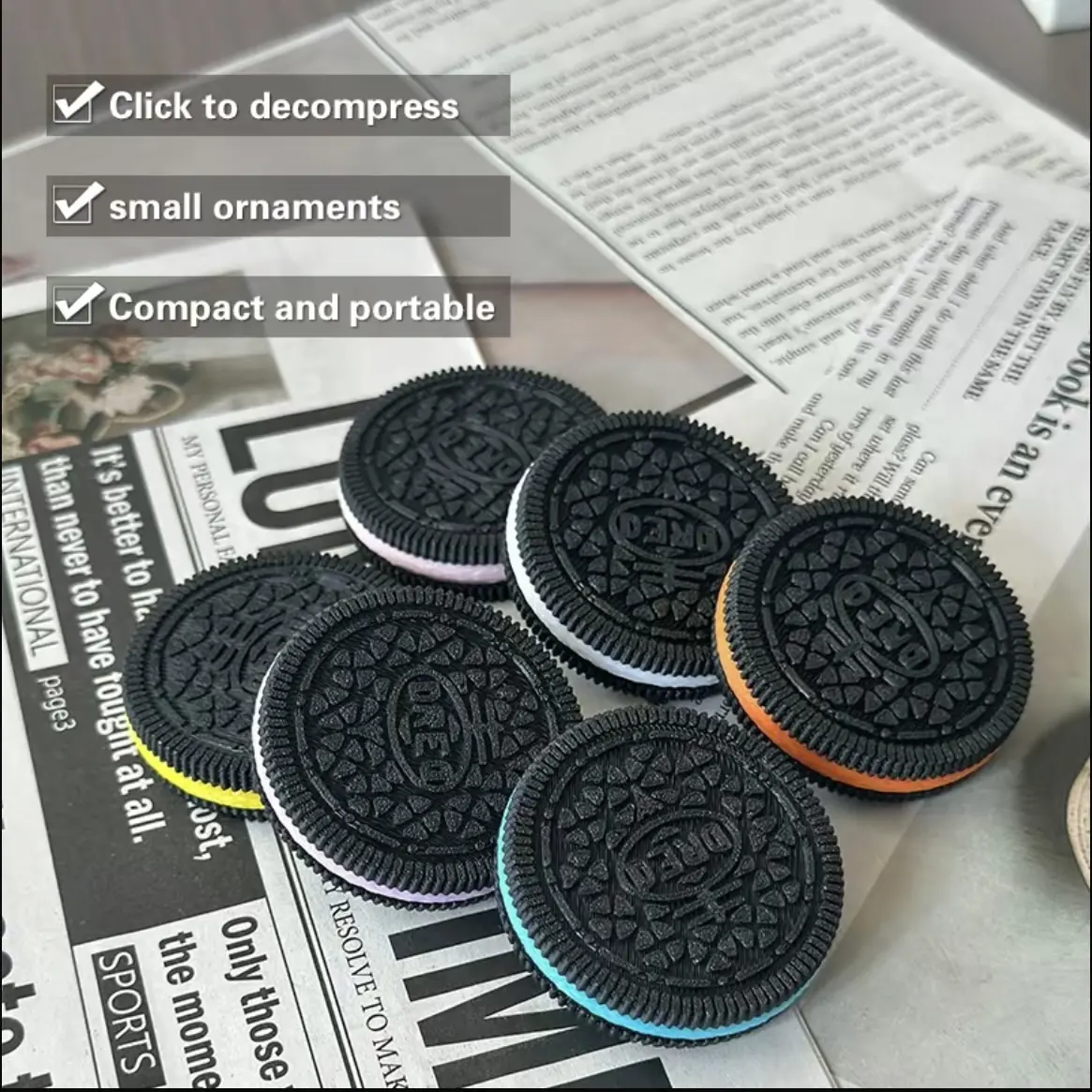 Creative Stress-Relief Fingertip Toy 3D Printed Simulation Oreo Rotating Sound Biscuit Desktop Fun Trendy Decorative Item home relief toy Gear Sensory Hypnotic