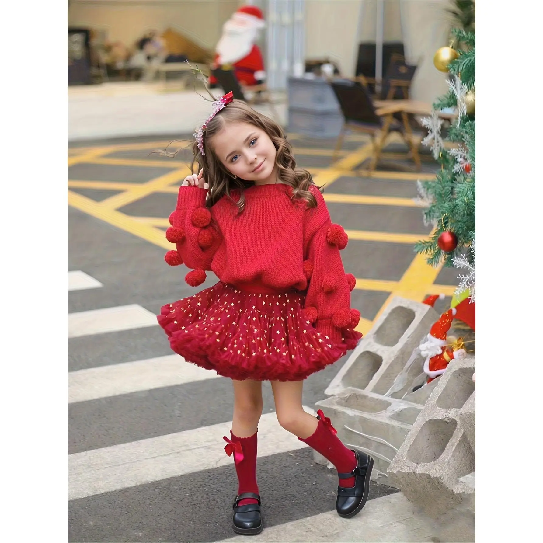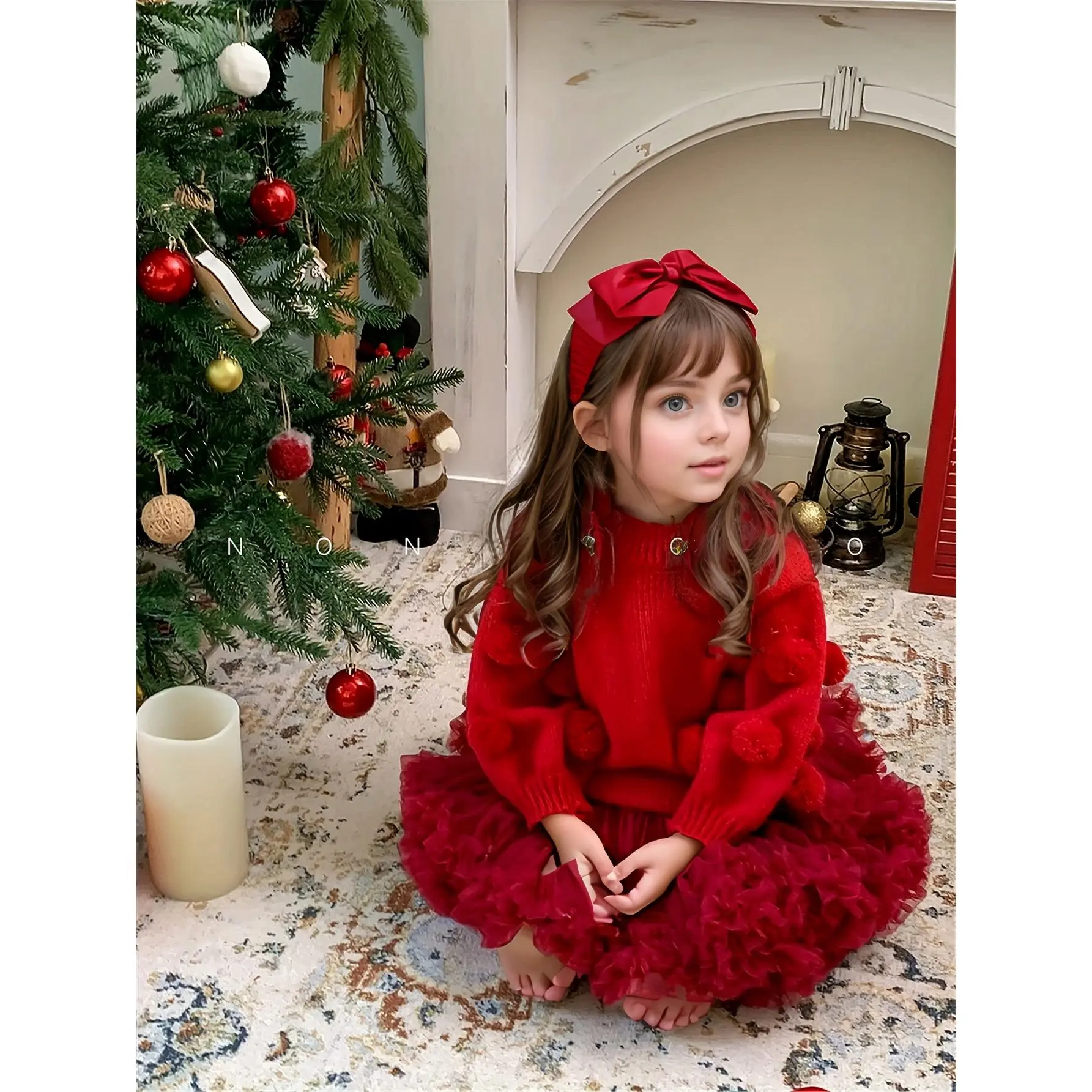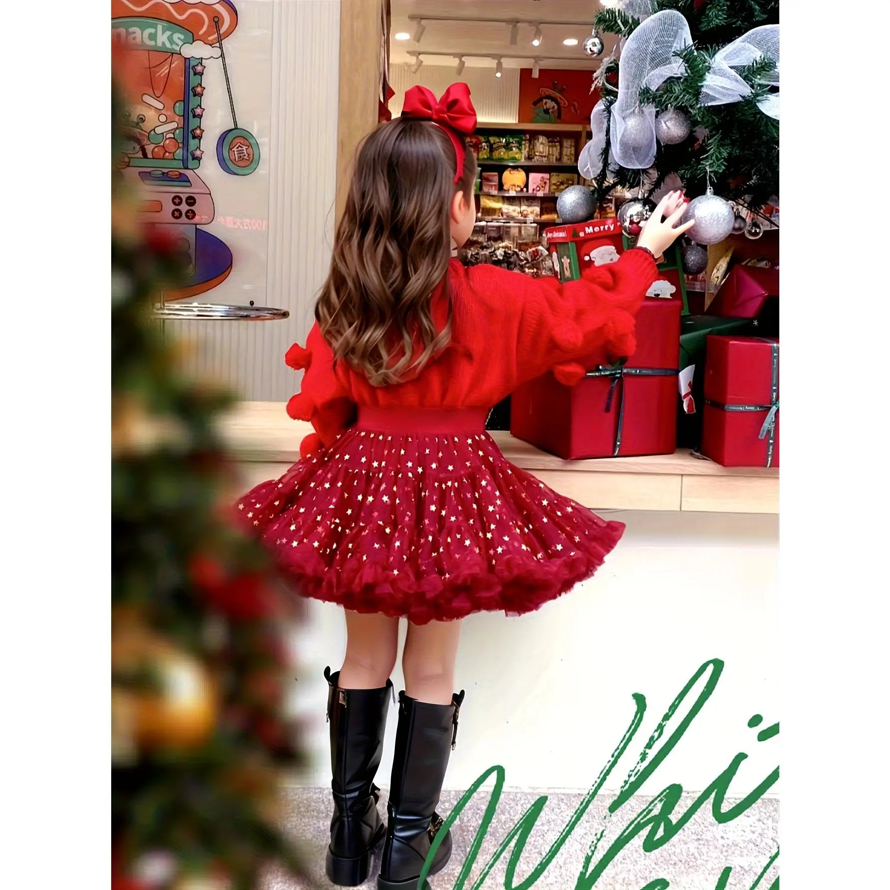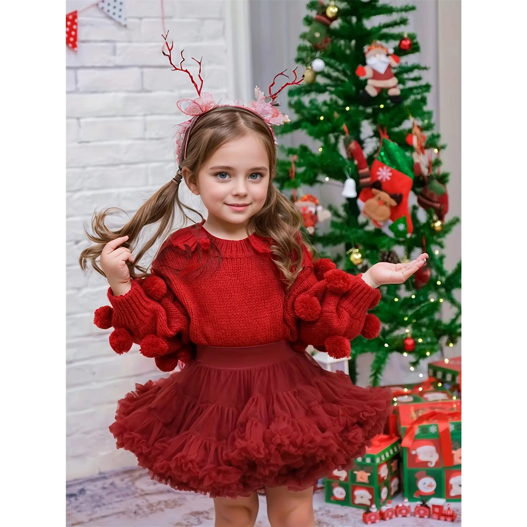 Girls' Burgundy Tutu Ballet Skirt with Wide Waist Belt - Puffy A-Line Princess Dress, Short Party Skirt for Christmas Nutcracker, Recitals & Photo Shoots - Machine Washable Dance  for &