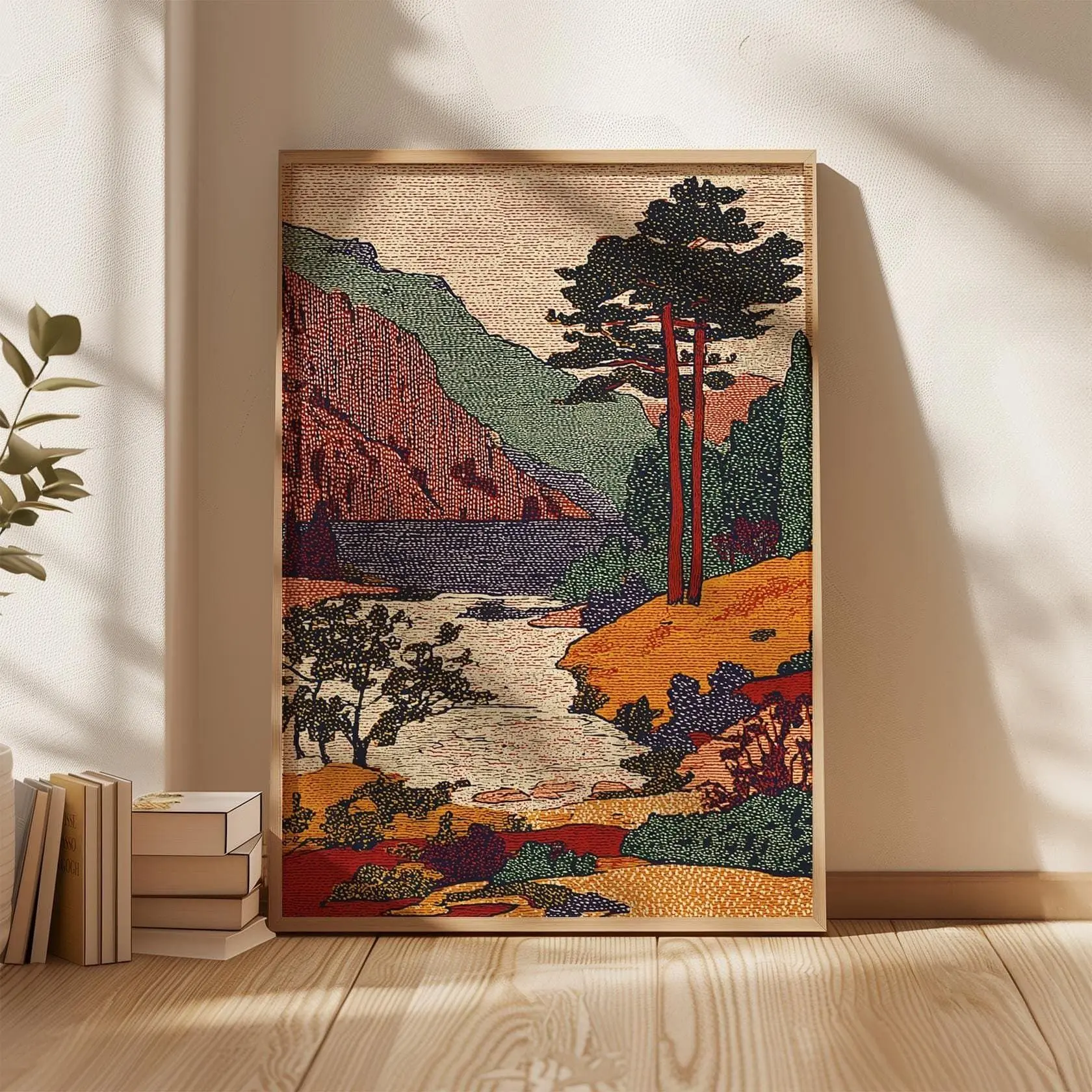 5. Vintage Landscape Poster, Classic Retro Scenic Mountain River Art Print, Sophisticated Warm Earth Tone Decor, Unframed Print Only