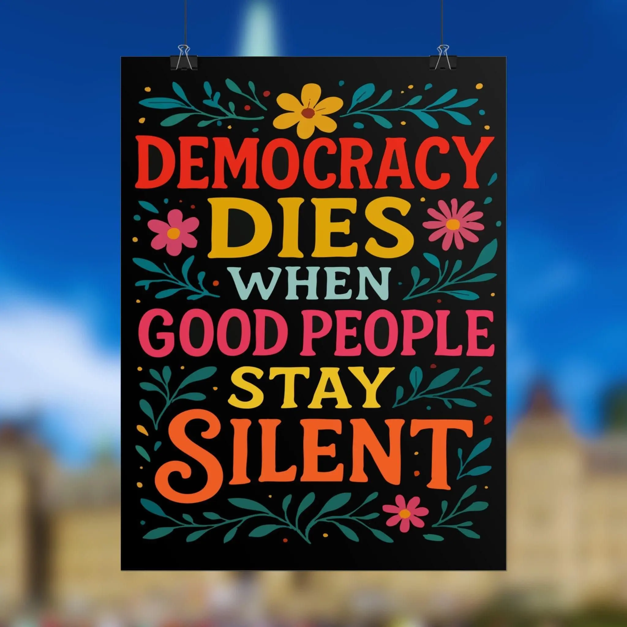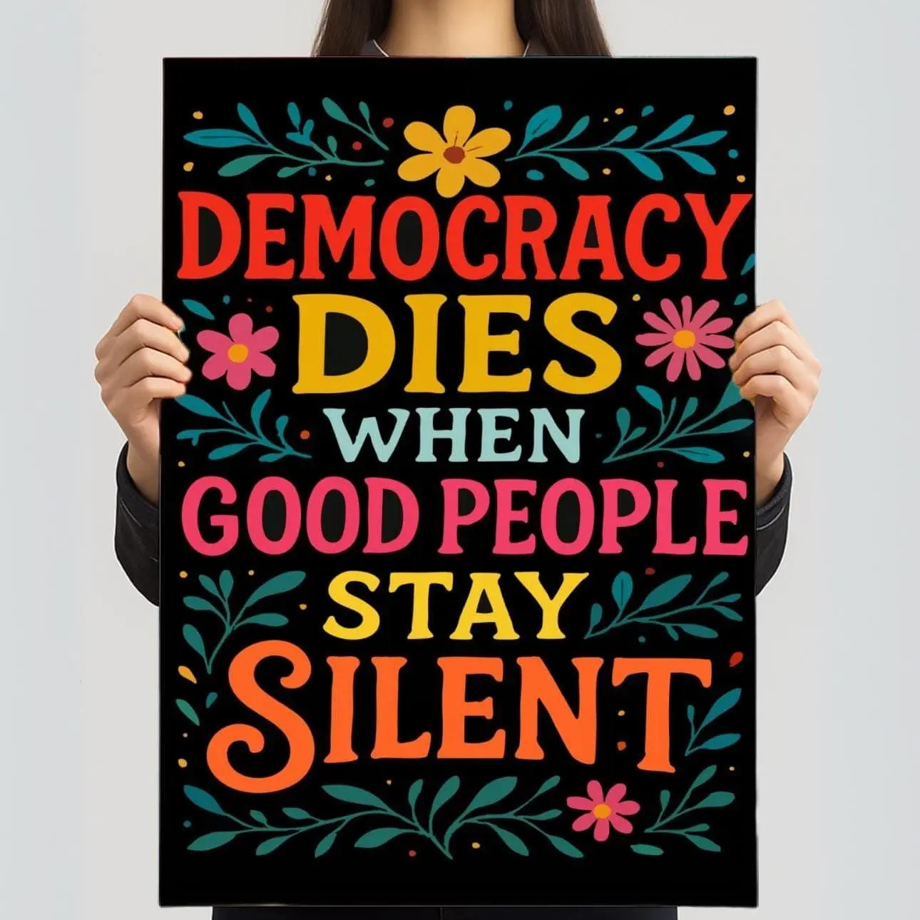 Democracy Dies When Good People Stay Silent Poster, Classic Political Protest Wall Art, Exclusive Aesthetic Print, Unframed Print Only