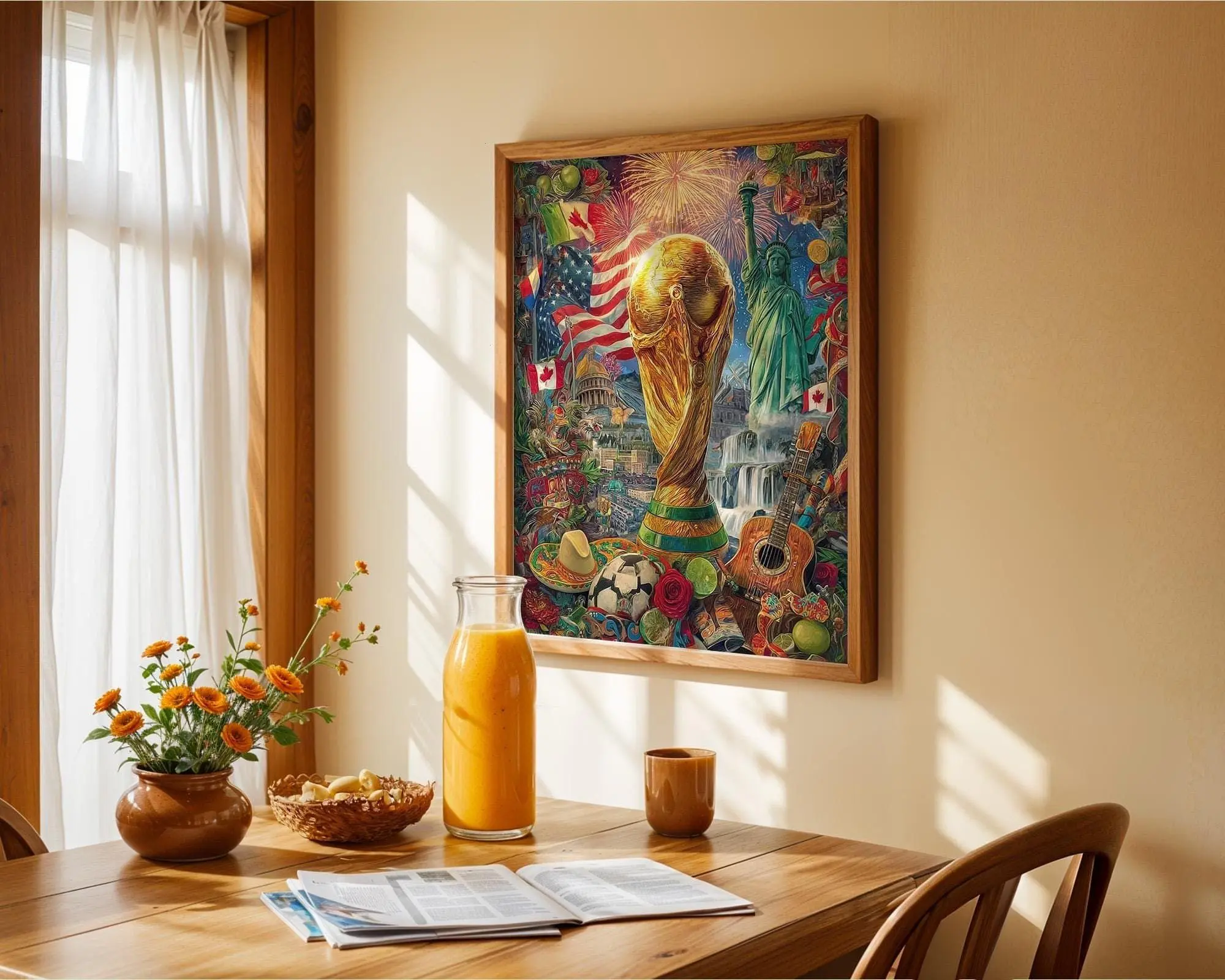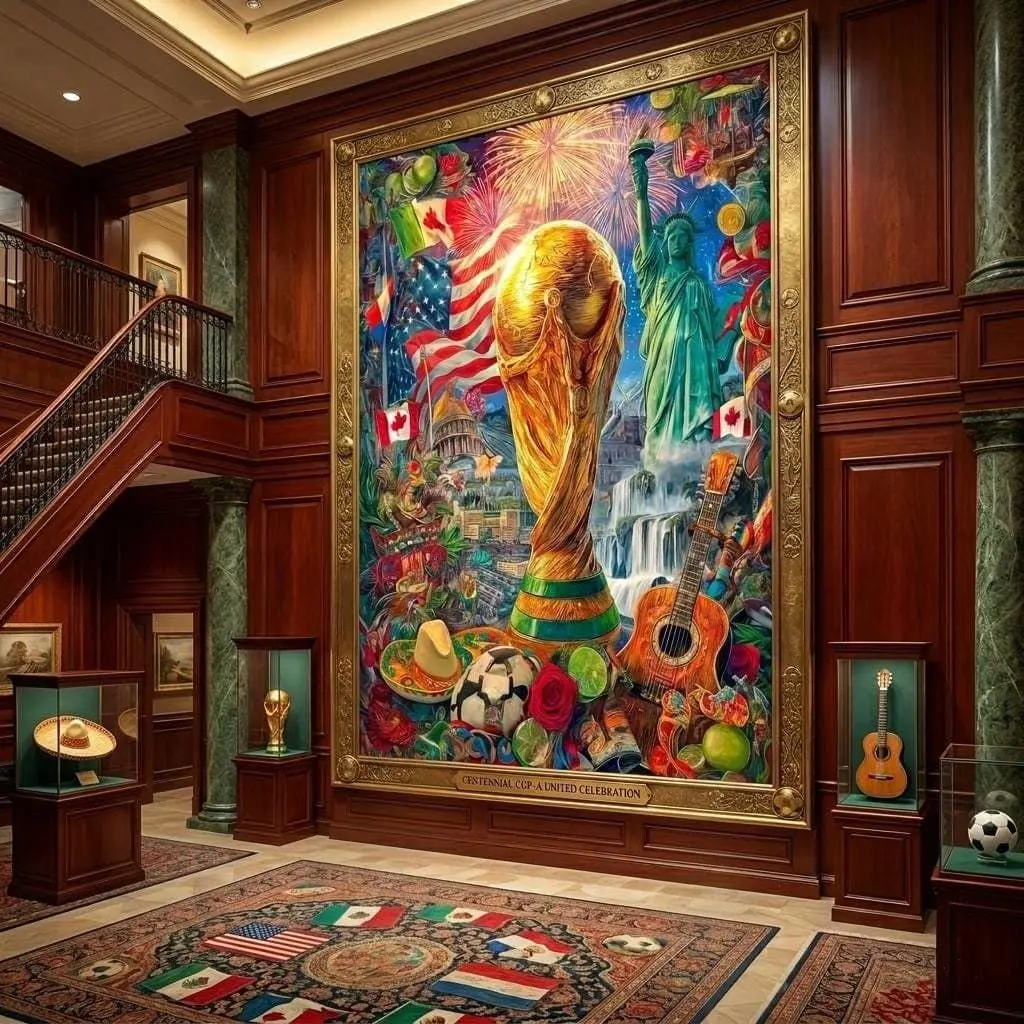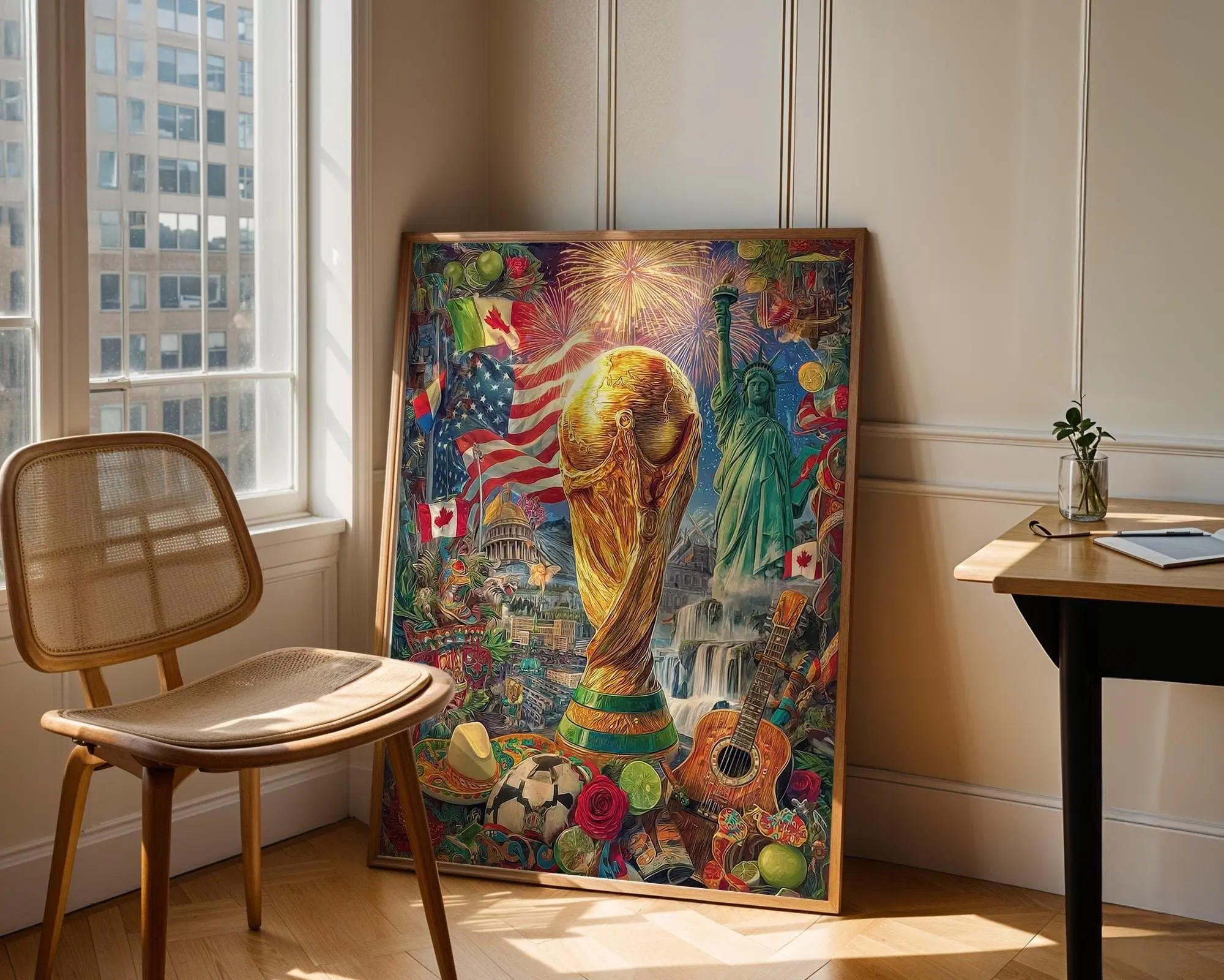 World Cup 2026 Wall Art, Large Canvas Print, Soccer Trophy USA Canada Mexico Collage Painting, Football Fan Home Decor