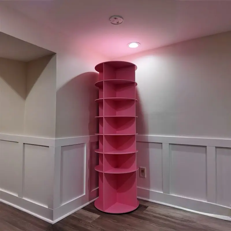 Turn any corner into a bold statement piece with this modern pink display shelf. Designed to maximize space while adding personality, this unique vertical shelf features multiple tiers—perfect for showcasing décor, books, plants, or collectibles.