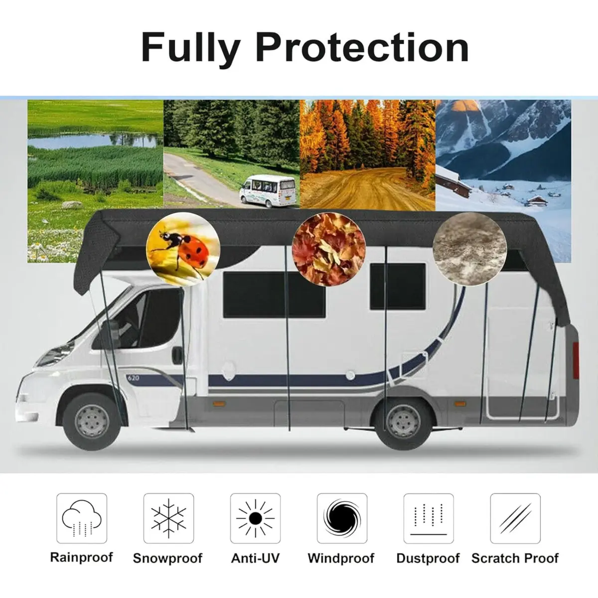 Give your prized Motorhome the all weather protection it deserves with our professional-grade waterproof roof cover.Engineered for demanding use on RV, Caravan,Motorhome, this cover combines heavy-duty construction with smart features.
