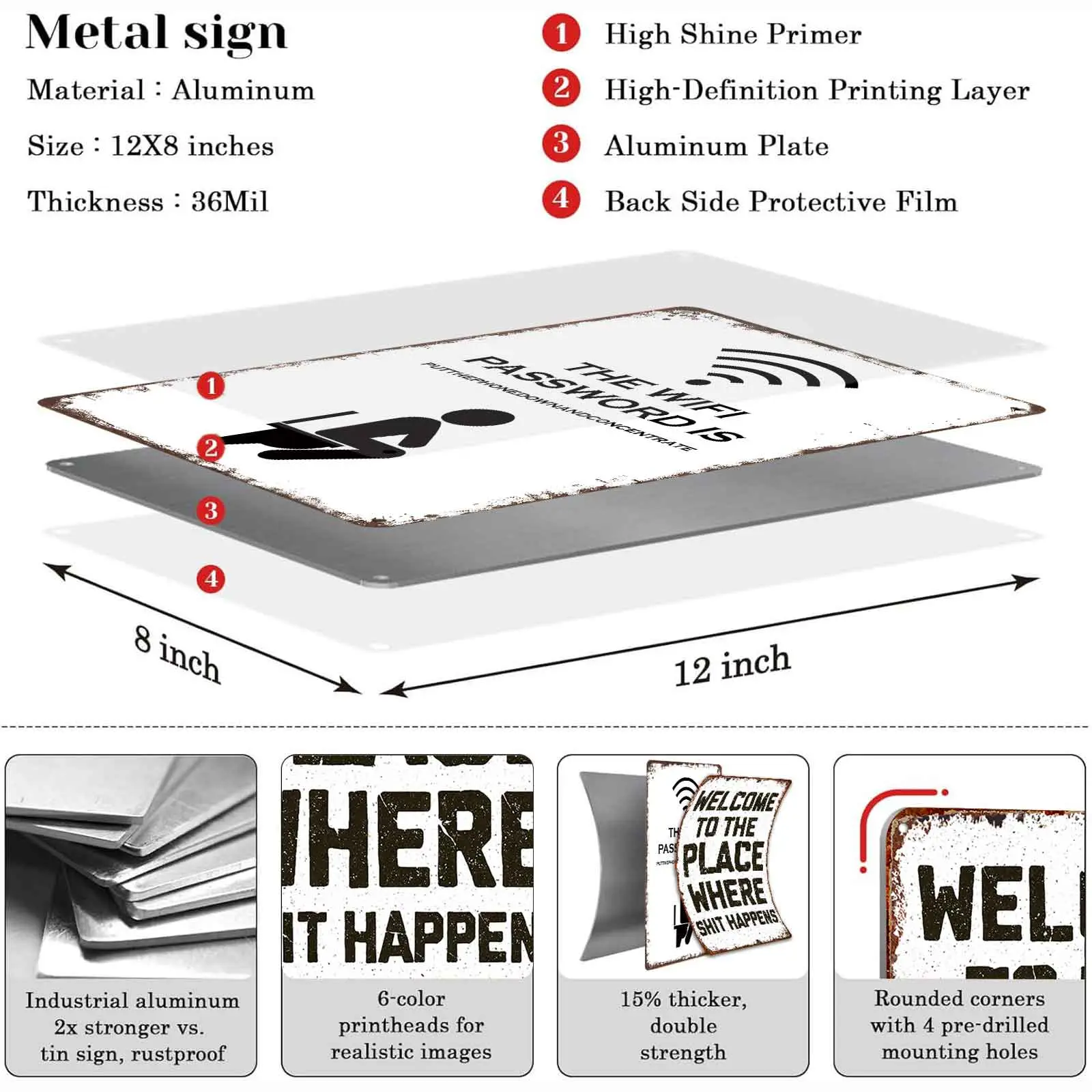 8x12 Inch Aluminum Metal Sign - "The WIFI Password Is PutThePhoneDownAndConcentrate" Funny Bathroom Decor | Perfect for Home, Man Cave, Bar, Cafe, and Guest Restrooms | Retro Tin Plaque, Easy to Hang, Hilarious Toilet Humor Art