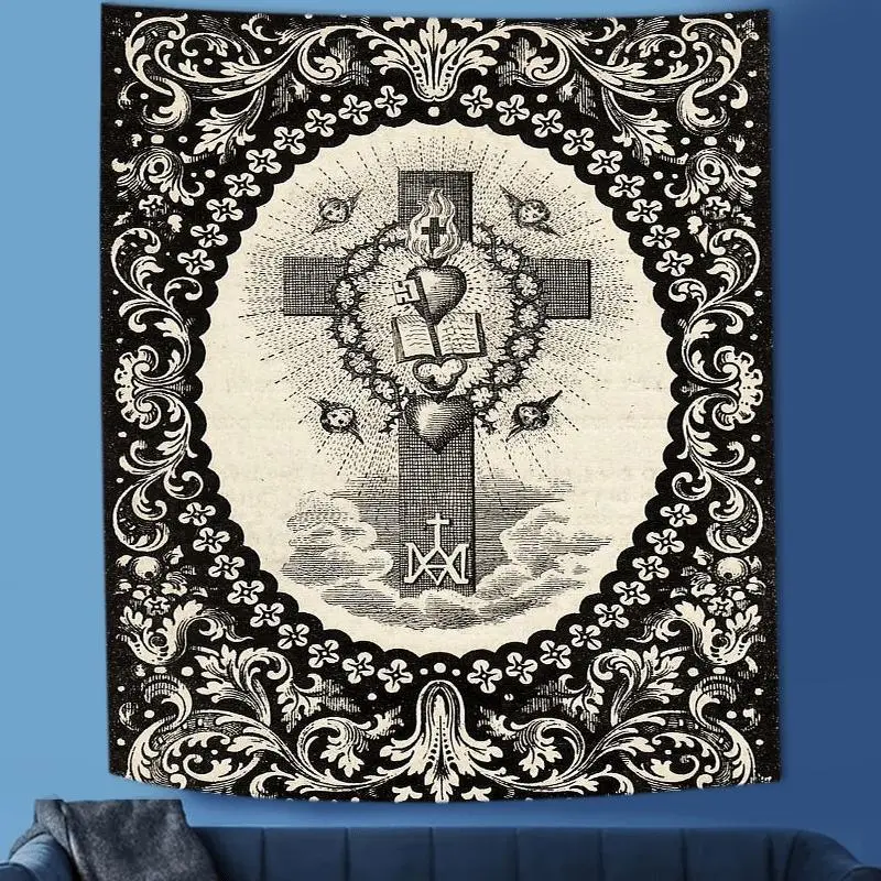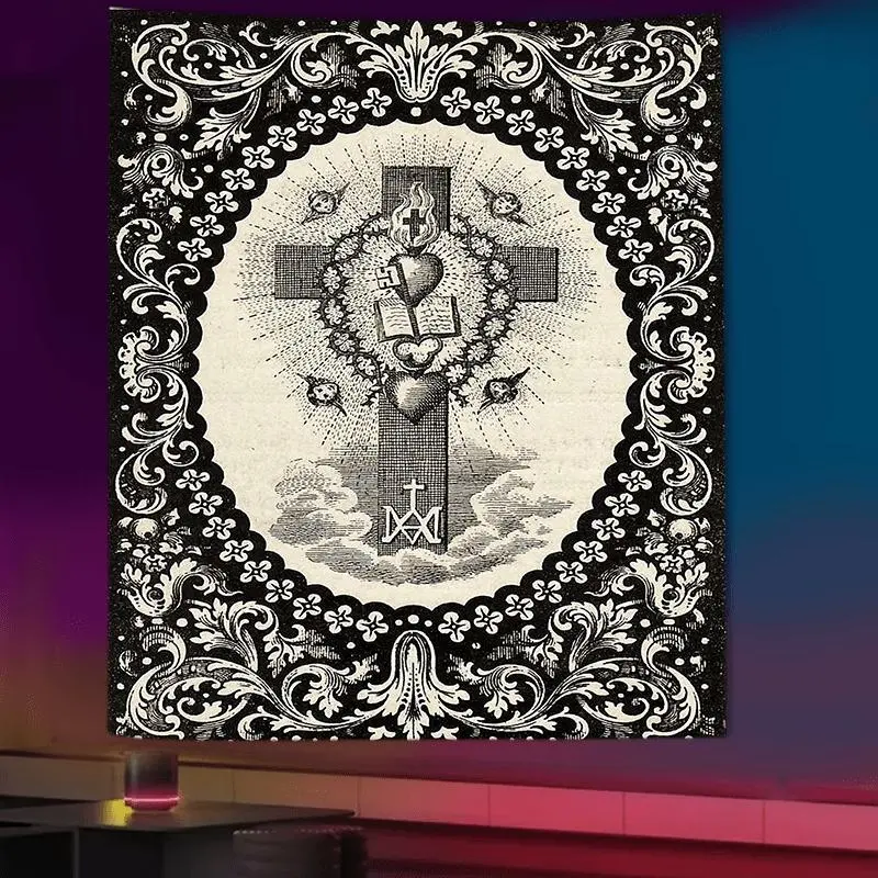 Sacred Heart Cross Pattern Durable Decorative Tapestry, Gothic Design Wall Hanging, Wall Decor for Home Living Room Bedroom Dorm, Home Decor