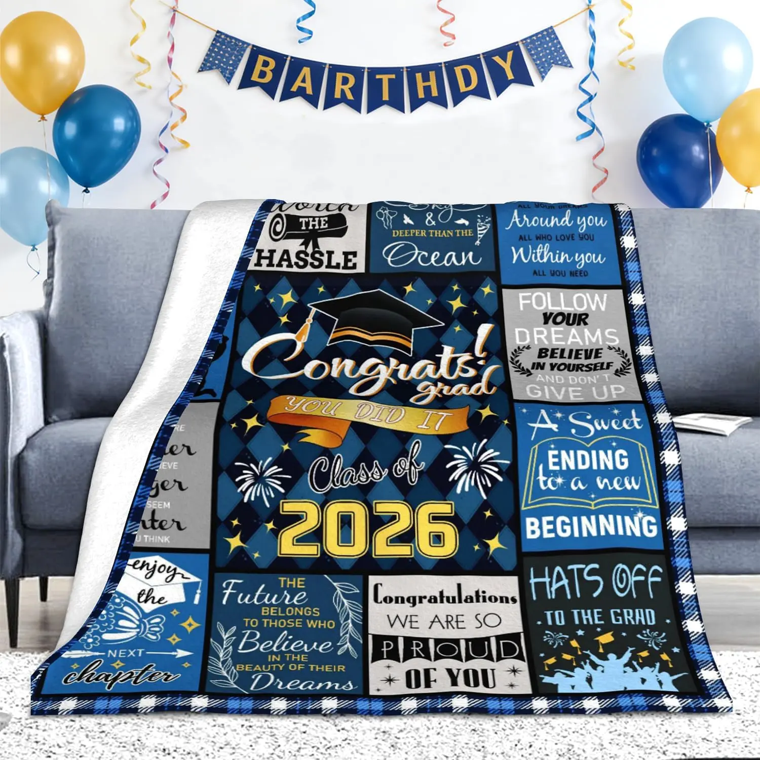 2026 Graduation Blanket for Her Him, Class of 2026 Graduation Gifts, High School Gift for Son Daughter, PHD College/Masters Souvenir Inspirational Quote Graduation Blankets for Women Men