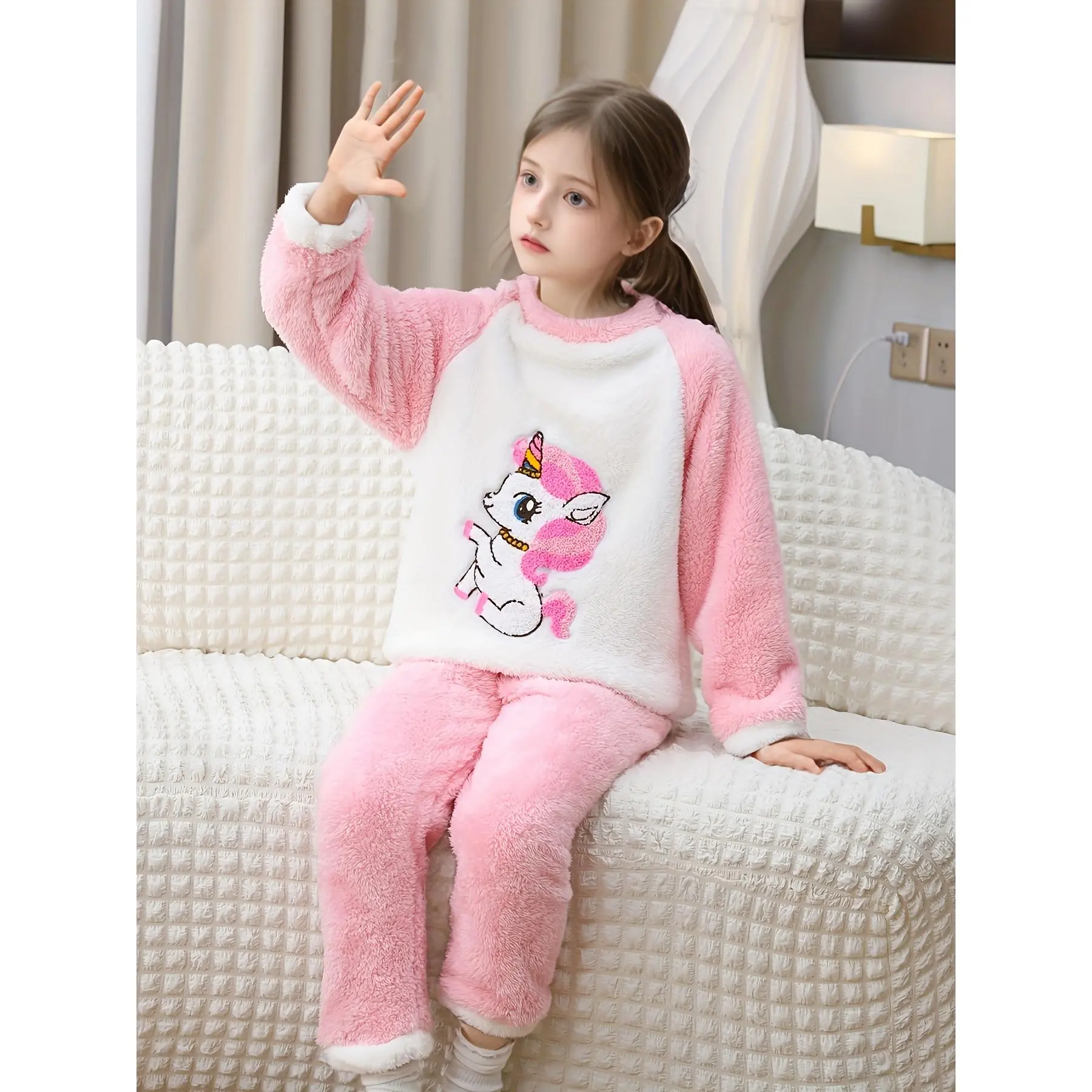 Material: PolyesterTops Composition: 100% PolyesterBottoms Composition: 100% PolyesterSleeve Length: Long SleeveSleeve Type: Raglan sleeveChest Pad: NoDetails: Color BlockPattern: AnimalsSet Type: PantsSheer: NoFabric: Slight StretchPlacket Type: PulloversCollar Style: Crew NeckType: PantsSeason: Fall/WinterOperation Instruction: Machine wash, do not dry cleanScene: Daily & CasualApplicable Age Group: Over 3 Years OldFit Type: RegularWeaving Method: Knit FabricPant length: long lengthPrinting Type: No PrintingStyle: CasualApplicable People: GirlsTop Type: SweatshirtBottom Type: TrousersItem ID: QP7506996Origin: Zhejiang,China