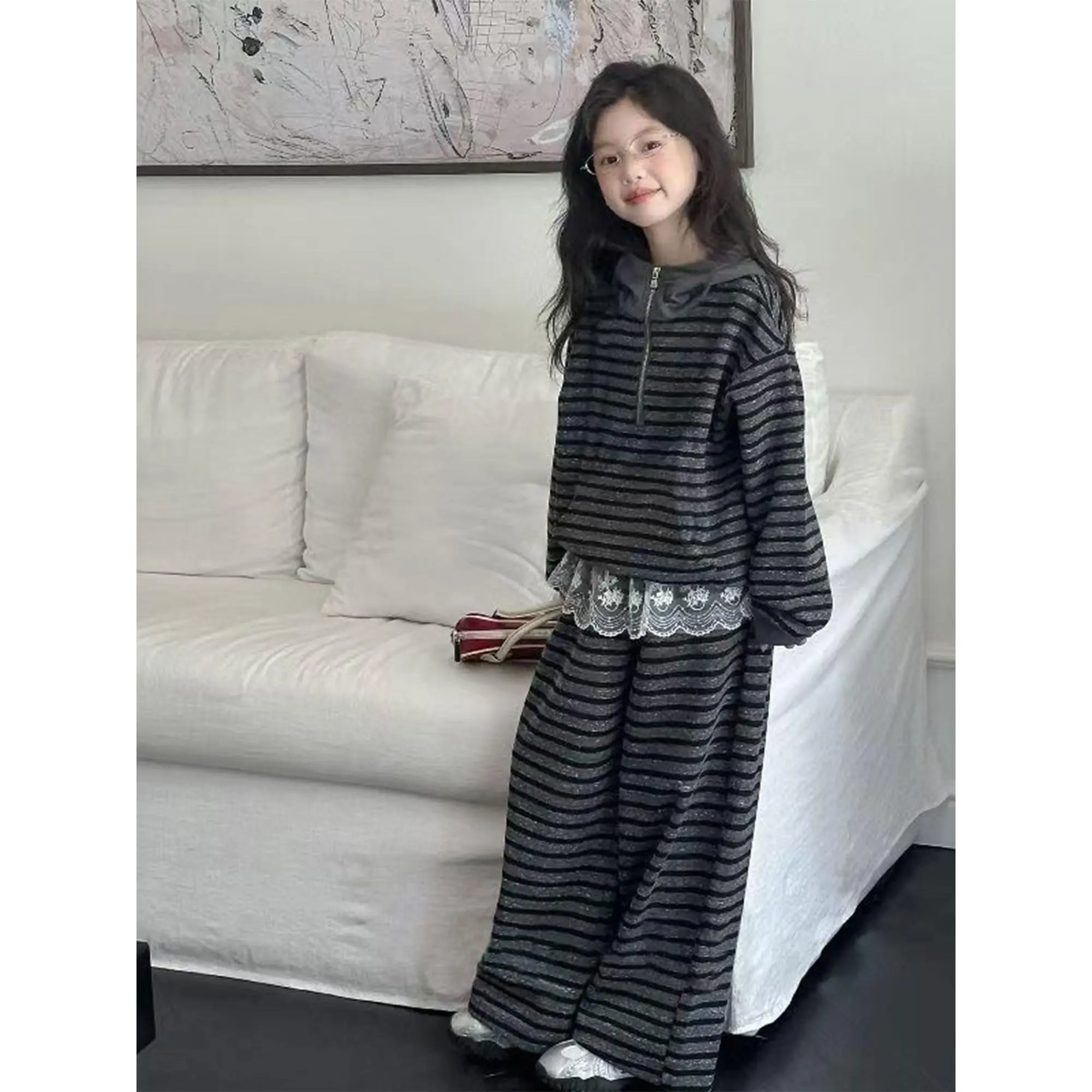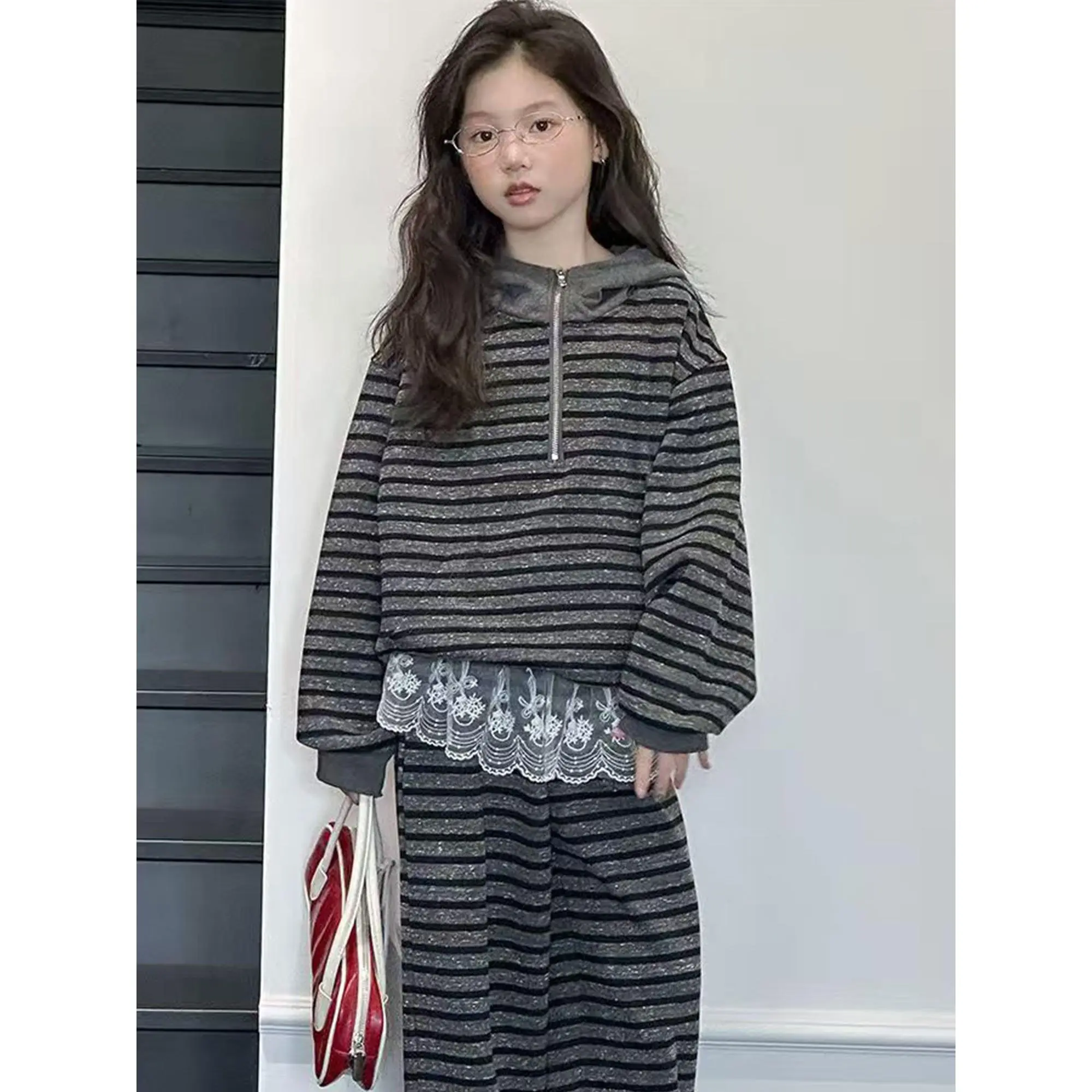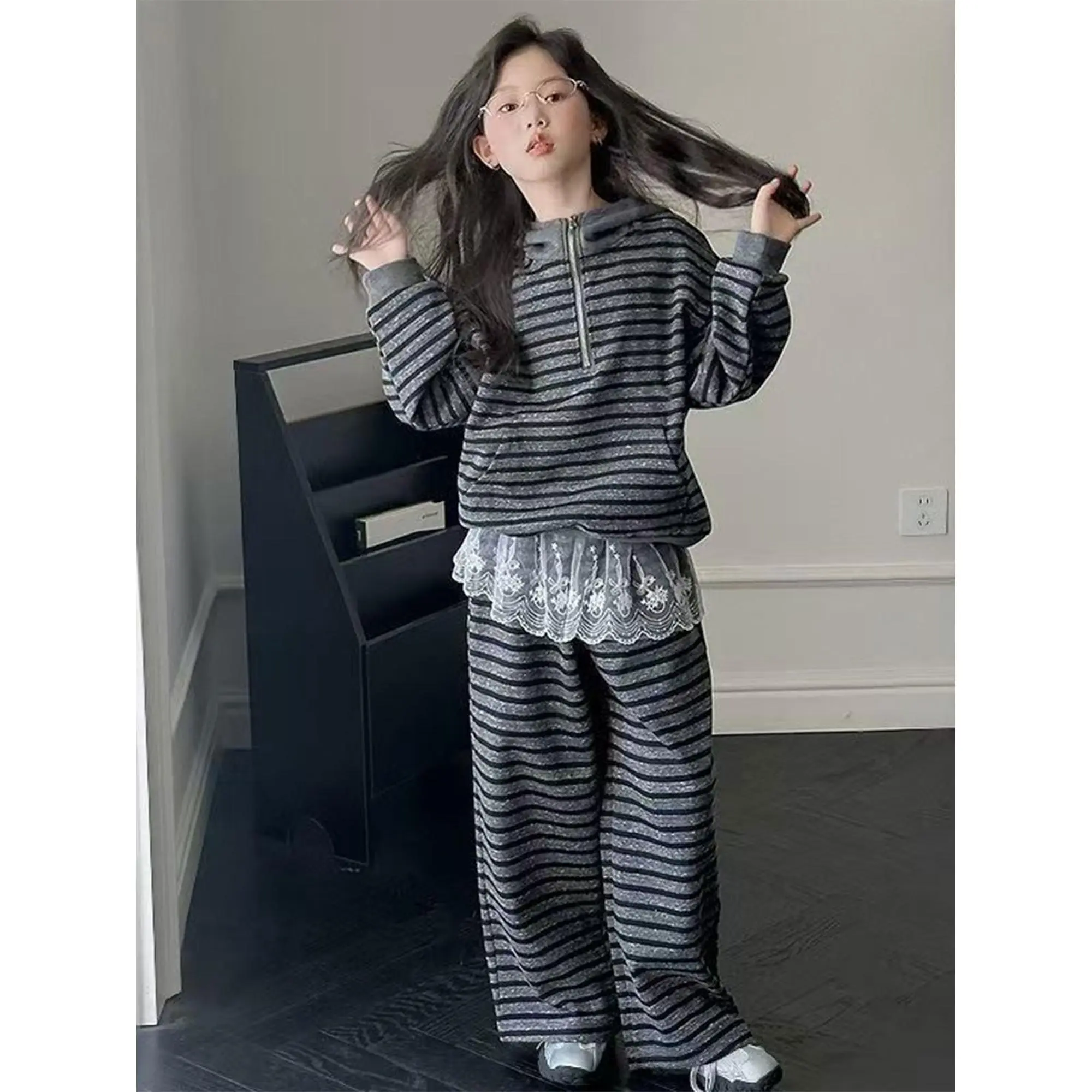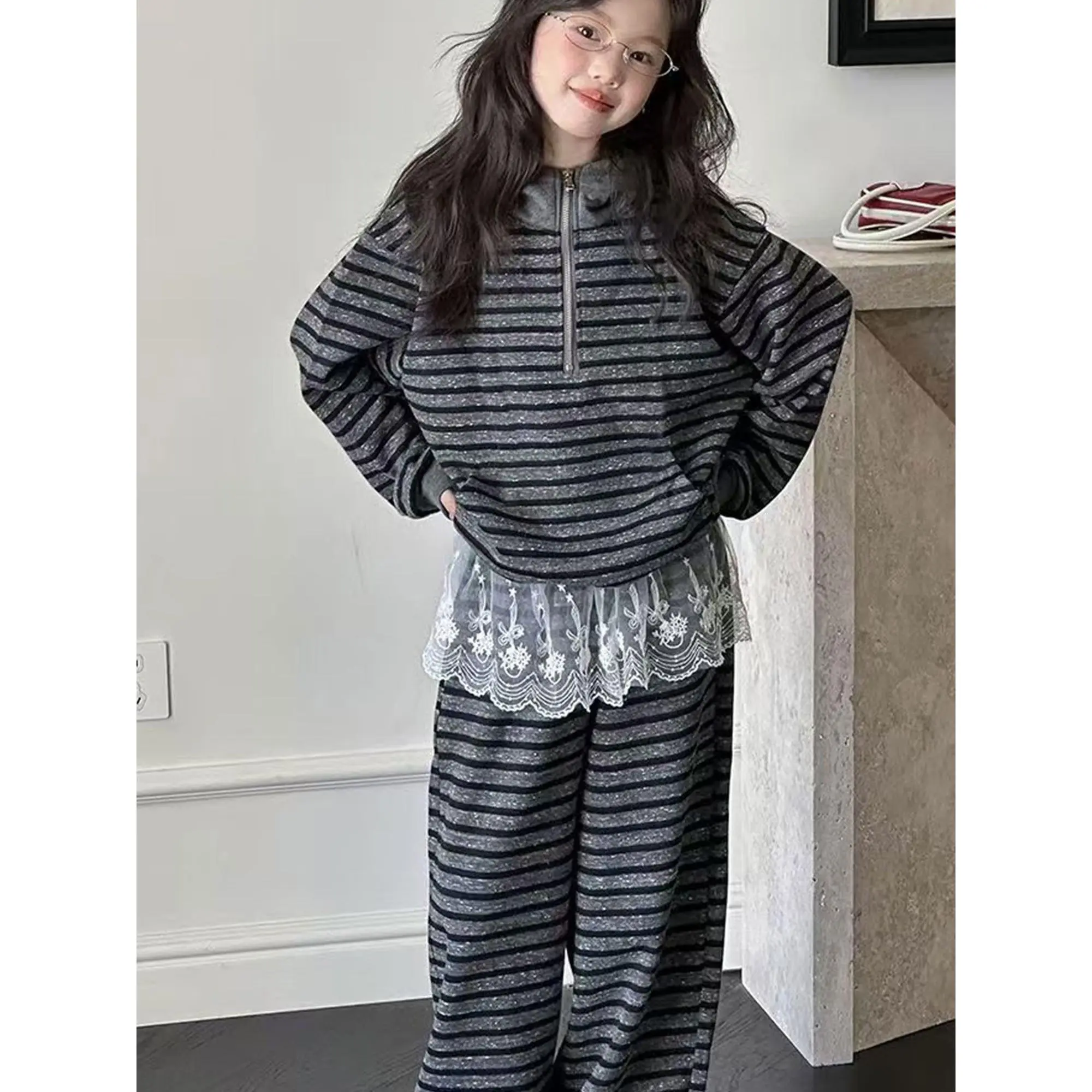 2025 Spring & Autumn New Girls' Striped 2pcs Set (Girls Clothes 10 to 12) - Hooded Half-Zip Sweatshirt with Lace Panels & Casual Wide-Leg Pants, for Outdoor2025 Spring & Autumn New Girls' Striped 2pcs Set (Girls Clothes 10 to 12) - Hooded Half-Zip Sweatshirt with Lace Panels & Casual Wide-Leg Pants, for Outdoor2025 Spring & Autumn New Girls' Striped 2pcs Set (Girls Clothes 10 to 12) - Hooded Half-Zip Sweatshirt with Lace Panels & Casual Wide-Leg Pants, for Outdoor2025 Spring & Autumn New Girls' Striped 2pcs Set (Girls Clothes 10 to 12) - Hooded Half-Zip Sweatshirt with Lace Panels & Casual Wide-Leg Pants, for Outdoor2025 Spring & Autumn New Girls' Striped 2pcs Set (Girls Clothes 10 to 12) - Hooded Half-Zip Sweatshirt with Lace Panels & Casual Wide-Leg Pants, for Outdoor2025 Spring & Autumn New Girls' Striped 2pcs Set (Girls Clothes 10 to 12) - Hooded Half-Zip Sweatshirt with Lace Panels & Casual Wide-Leg Pants, for Outdoor