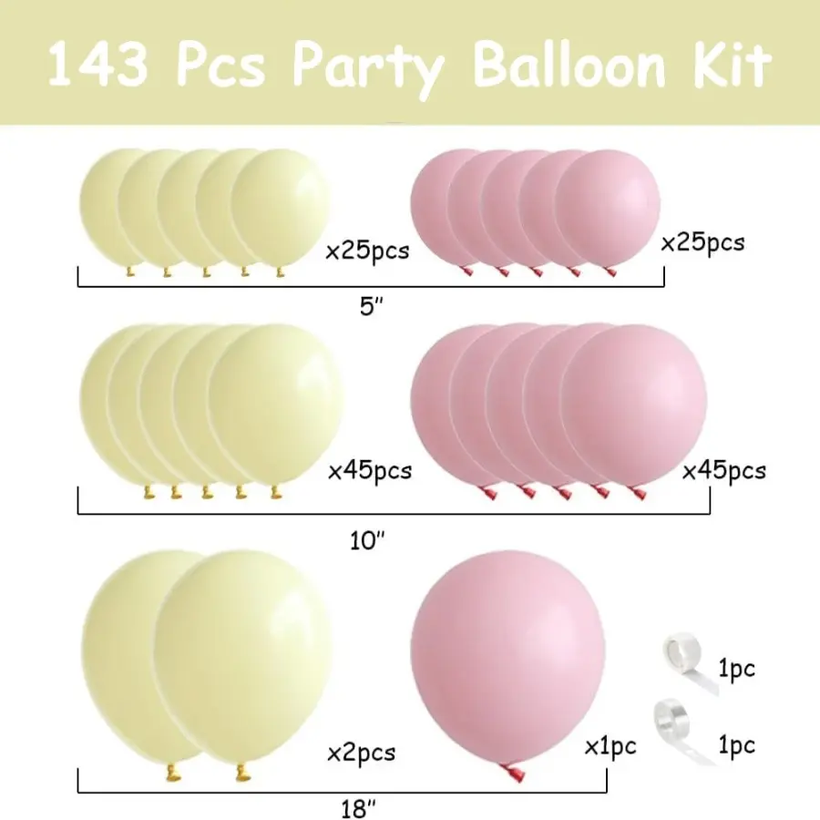 143PCS Light Pink Yellow Latex Balloon Set Suitable for Birthday Parties, Weddings, Valentine's Day Parties, Decoration