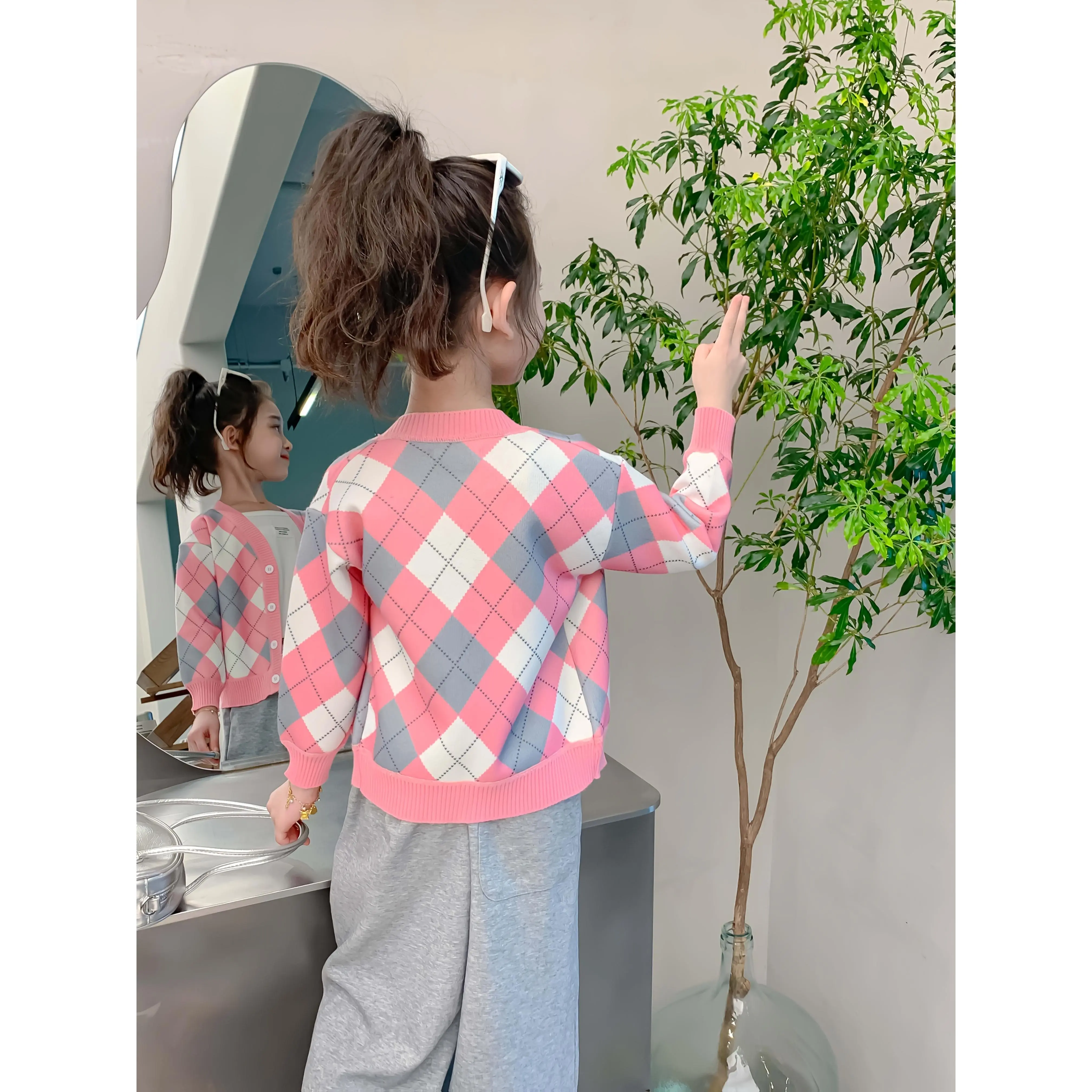 Material: PolyesterComposition: 94. 7% Polyester, 5. 3% SpandexLength: RegularSleeve Length: Long SleeveSleeve Type: Regular SleeveDetails: Rib-KnitPattern: All Over PrintSheer: NoFabric: Slight StretchPlacket Type: PlacketCollar Style: V-neckSeason: Fall/WinterOperation Instruction: Hand wash,do not dry cleanStyle: CasualFit Type: RegularClosure Type: ButtonApplicable Age Group: 12 and underWeaving Method: Knit FabricApplicable People: GirlsItem ID: TU3708613Origin: Jiangsu,China