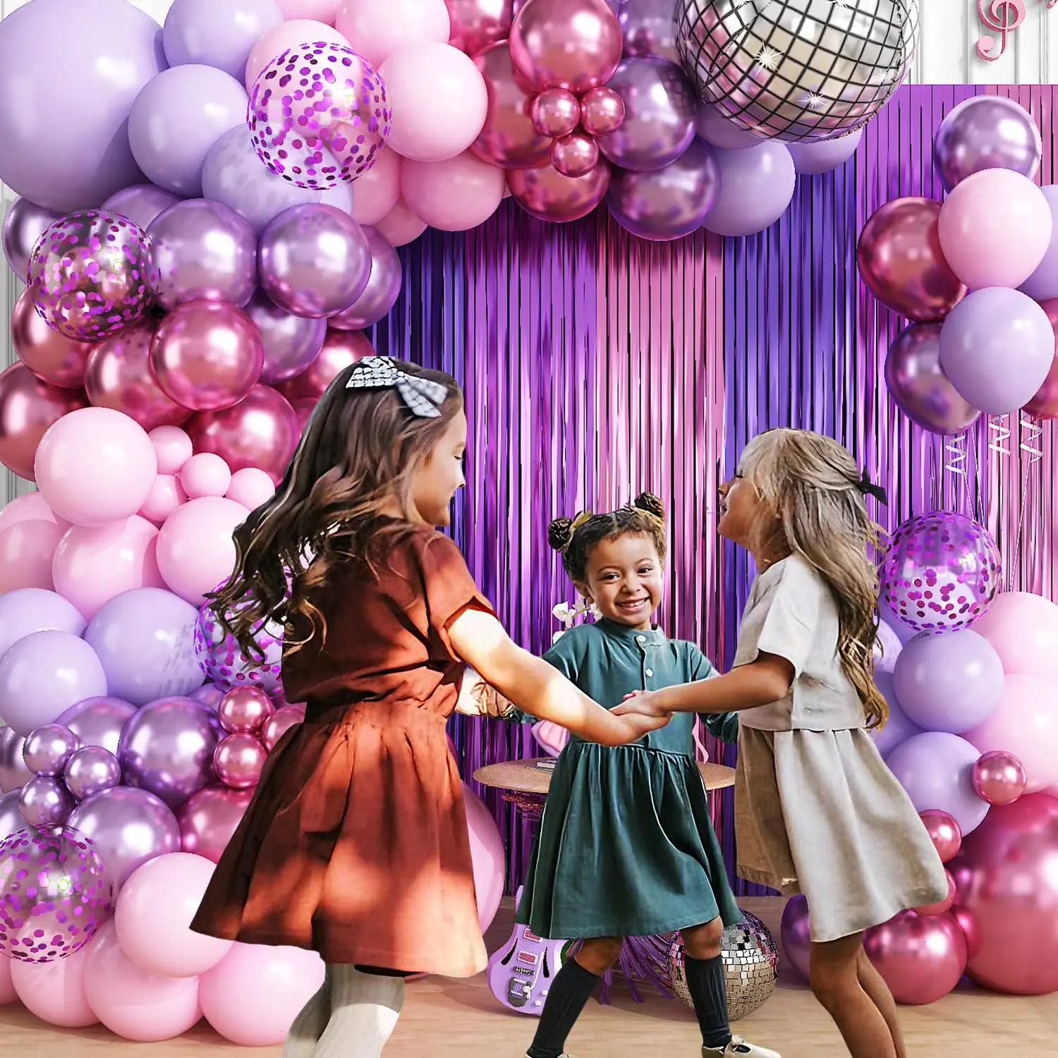 Purple & Pink Balloon Garland Kit with Music Theme Foil Fringe for Galentine's & Party Decor