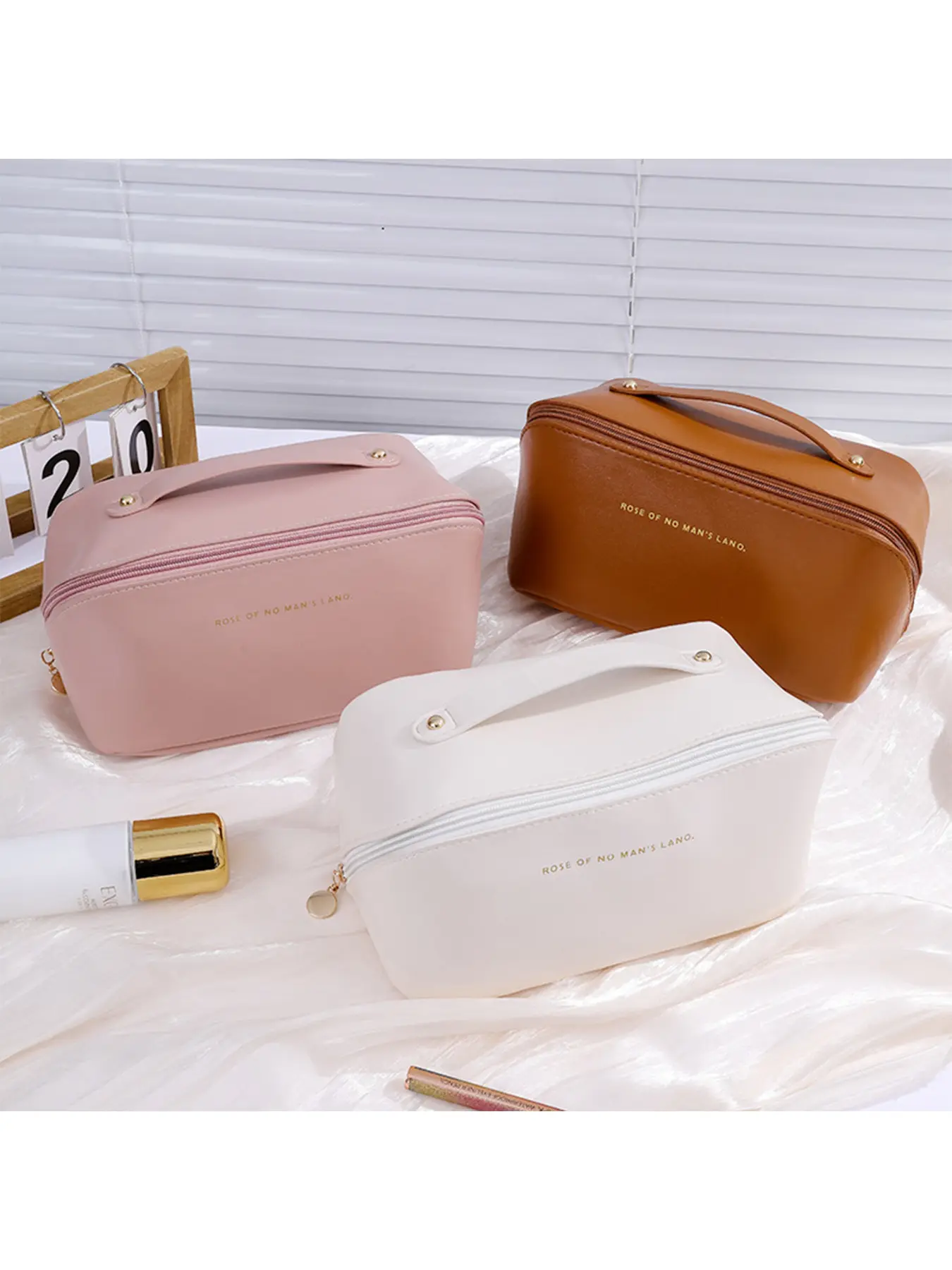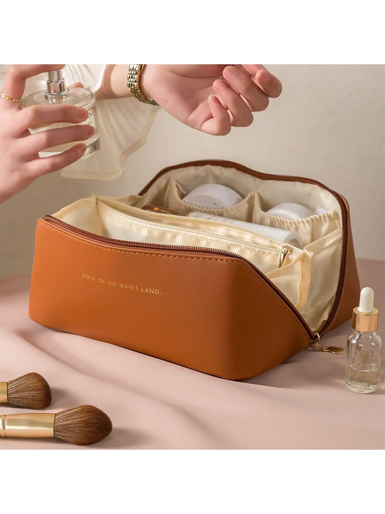 Large Capacity Makeup Bag, Fashionable Portable Handbag, PU Leather Cosmetic Organizer, Zipper Travel Storage, Gift for Girls