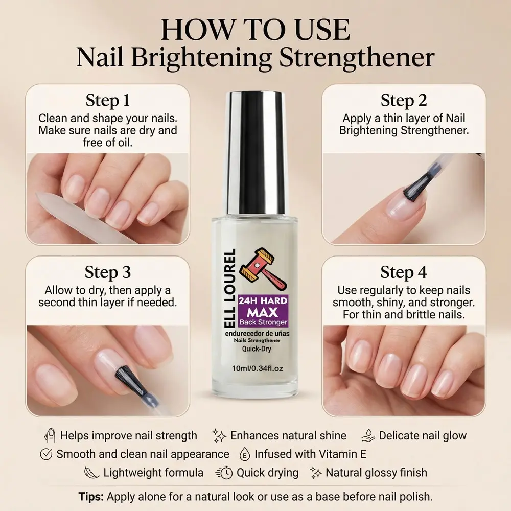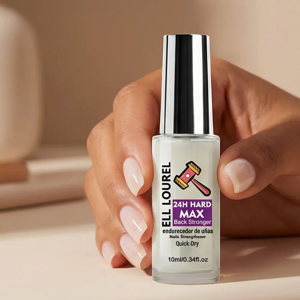 ELL LOUREL 24H HARD MAX Back Stronger Nail Strengthener, 10ml Quick-Dry Nail Hardener, Maximum Strength Formula for Long-Lasting Hardness, Prevents Breakage & Damage, 24-Hour Protection, Protective Nail Care Treatment, Salon Quality, Nail Lovers Gift