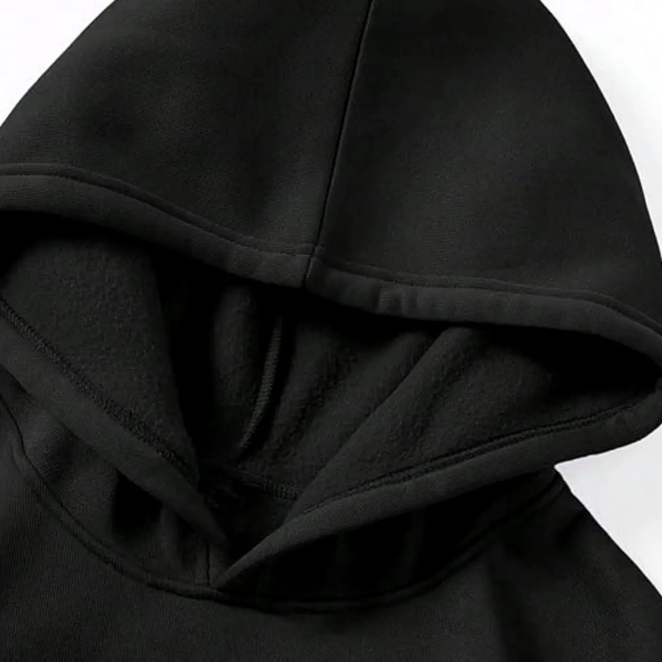 • Hoodie: Made of a cotton blend fabric, offering durability, warmth, and a comfortable feel