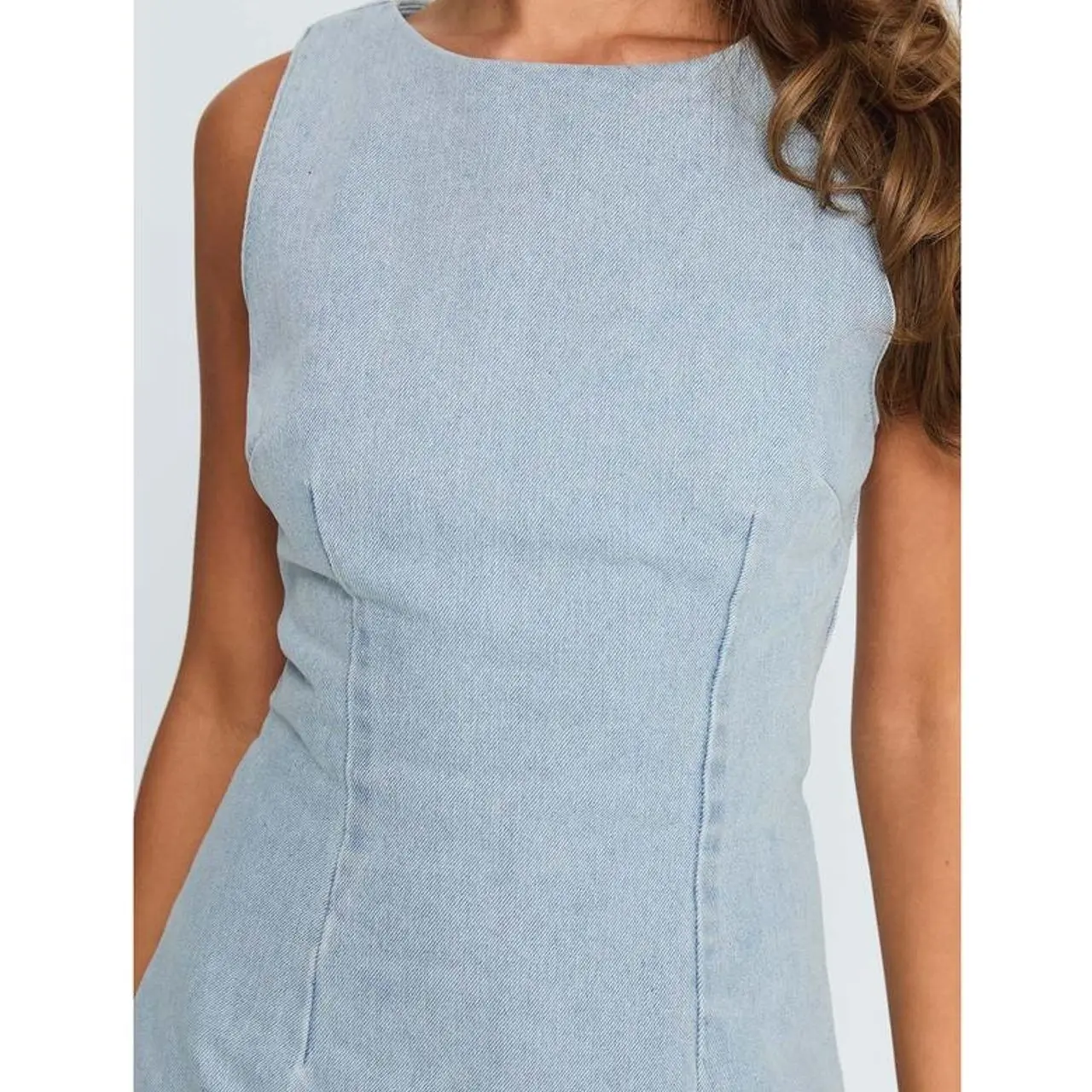 Tie-back shift denim playsuit